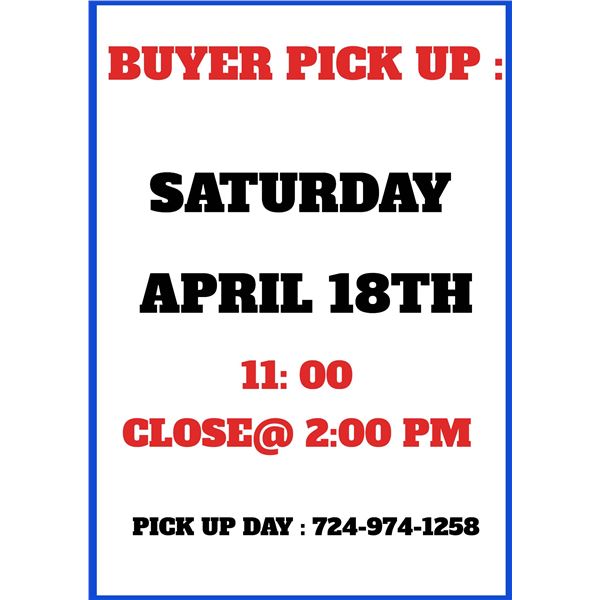 PICK /PAY SAT APRIL 18 : 11-2:PM