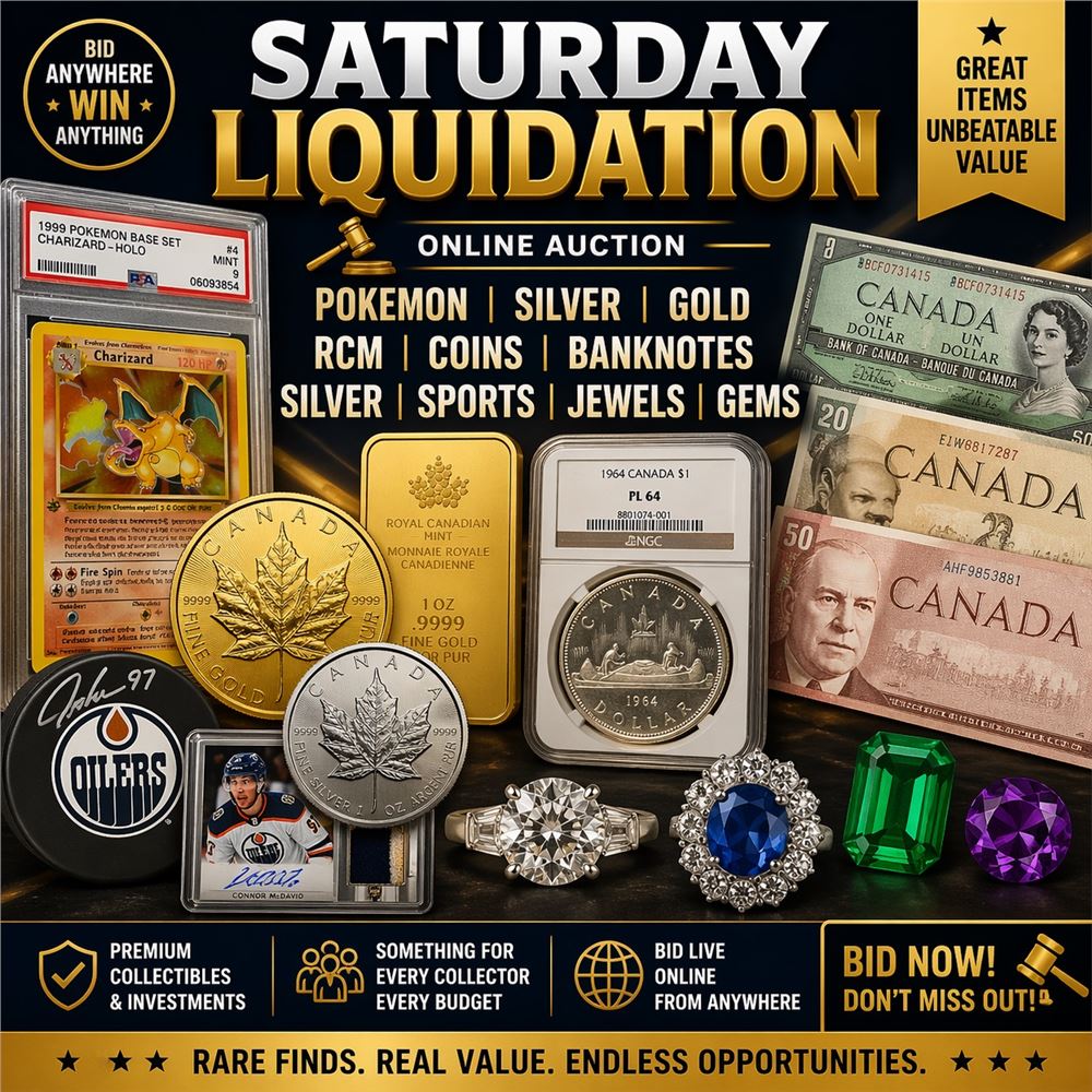 Saturday Liquidation | Pokemon, Silver, Gold, RCM, Coins, Banknotes, Silver, Sports, Jewels, Gems