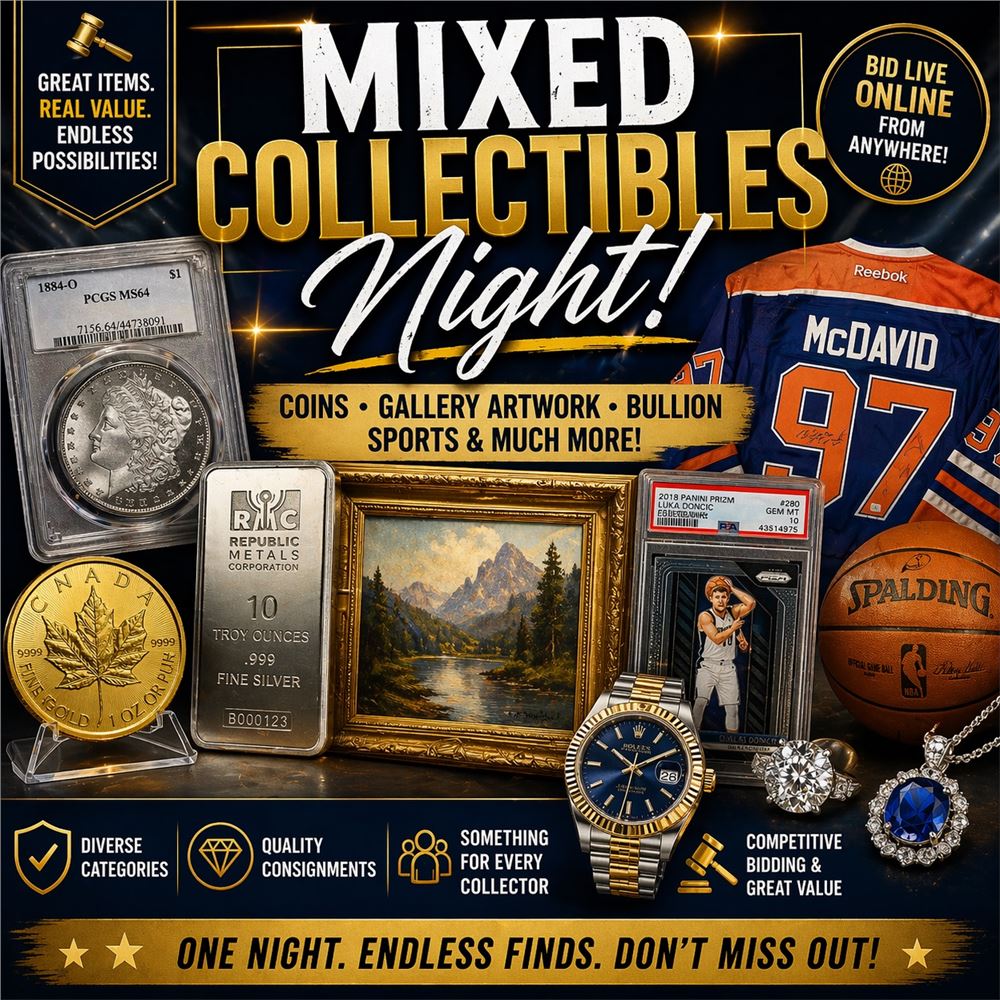 Mixed Collectibles Night | Coins, Gallery Artwork, Bullion, Sports & Much More!