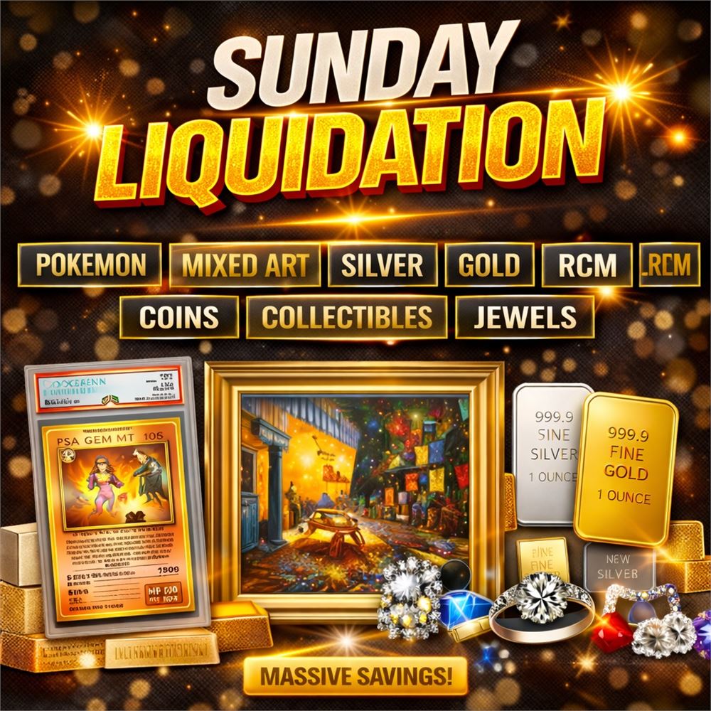 Sunday Liquidation | Pokemon, Mixed Art, Silver, Gold, RCM, Coins, Collectibles, Jewels