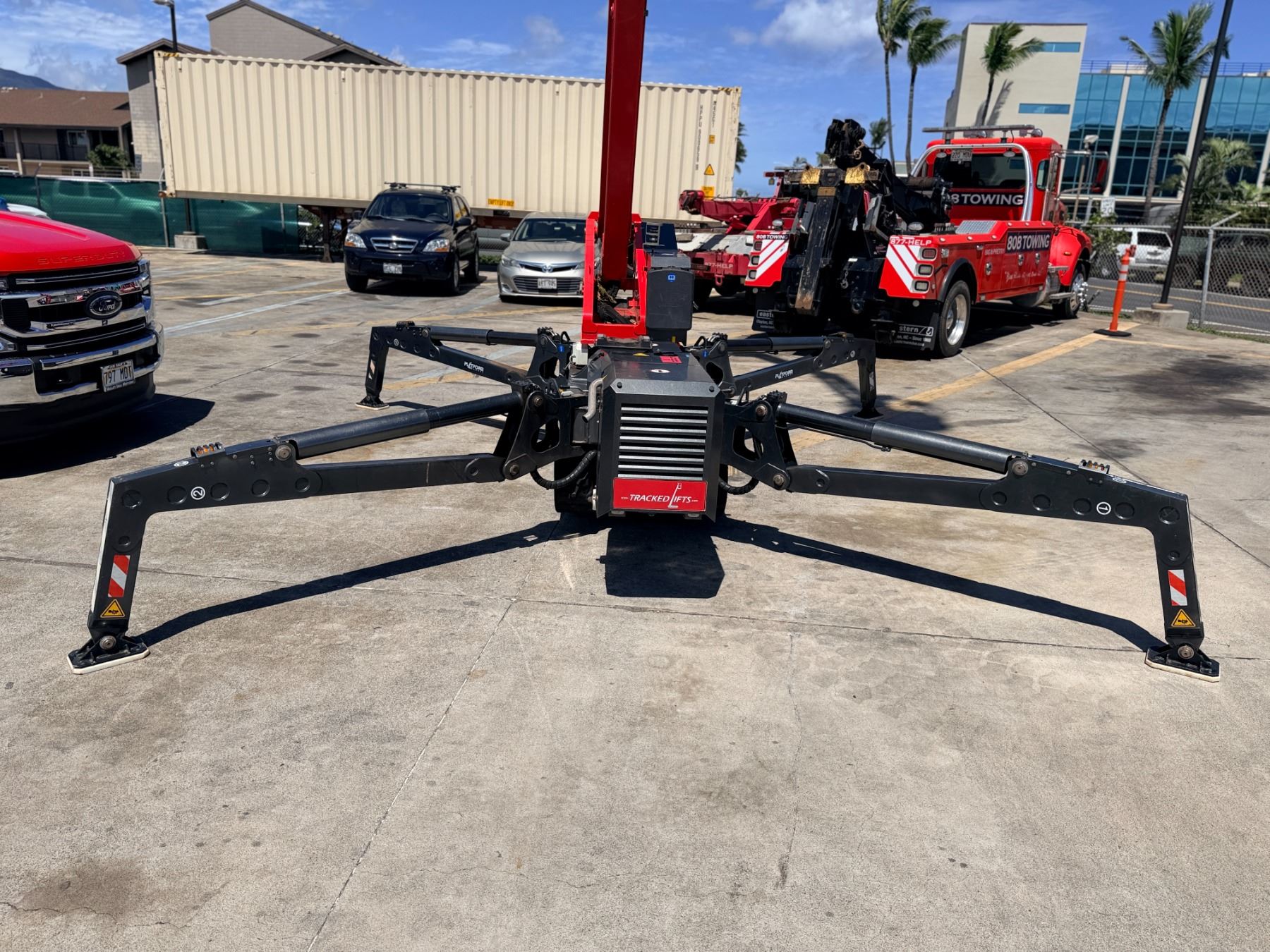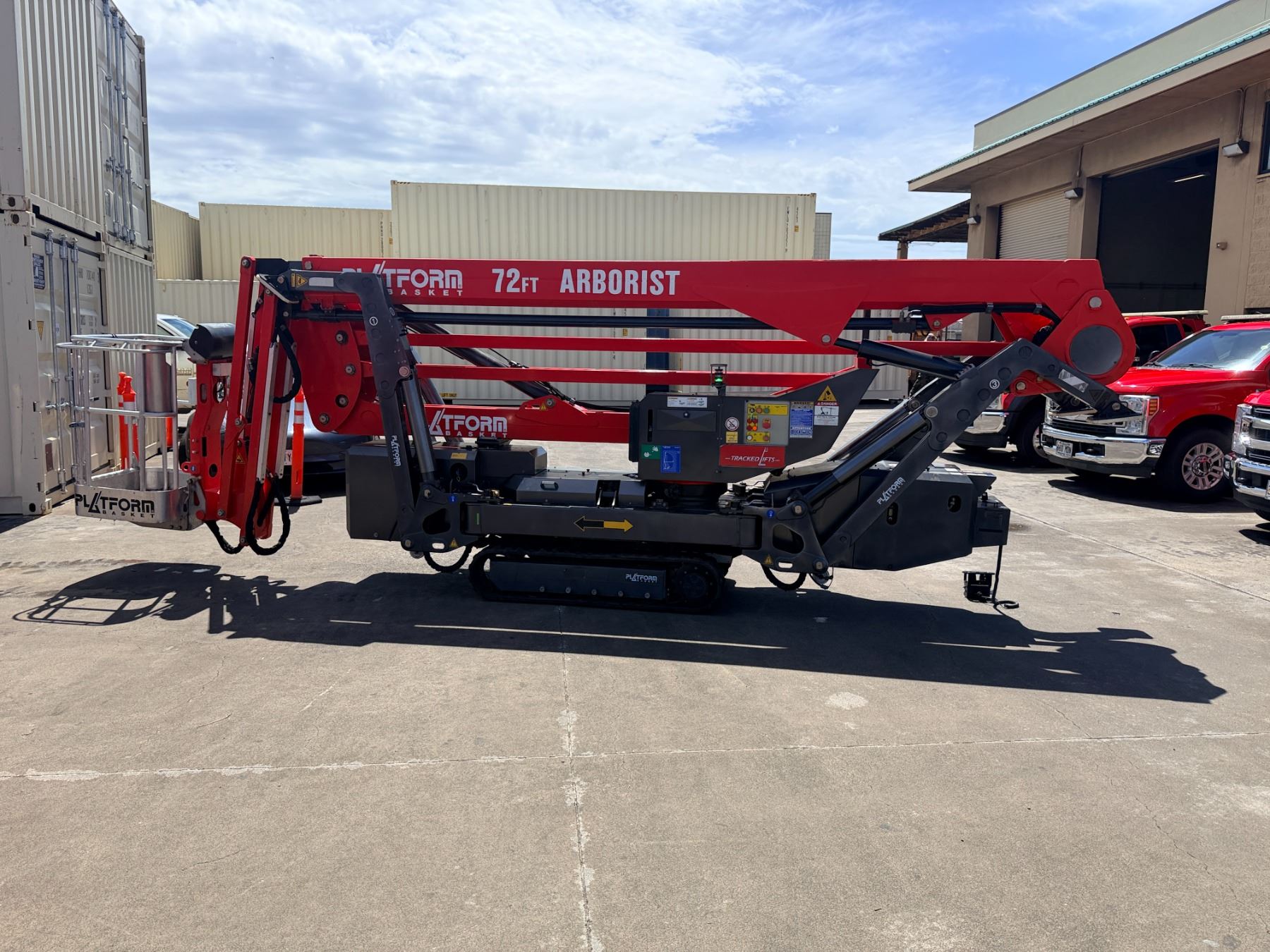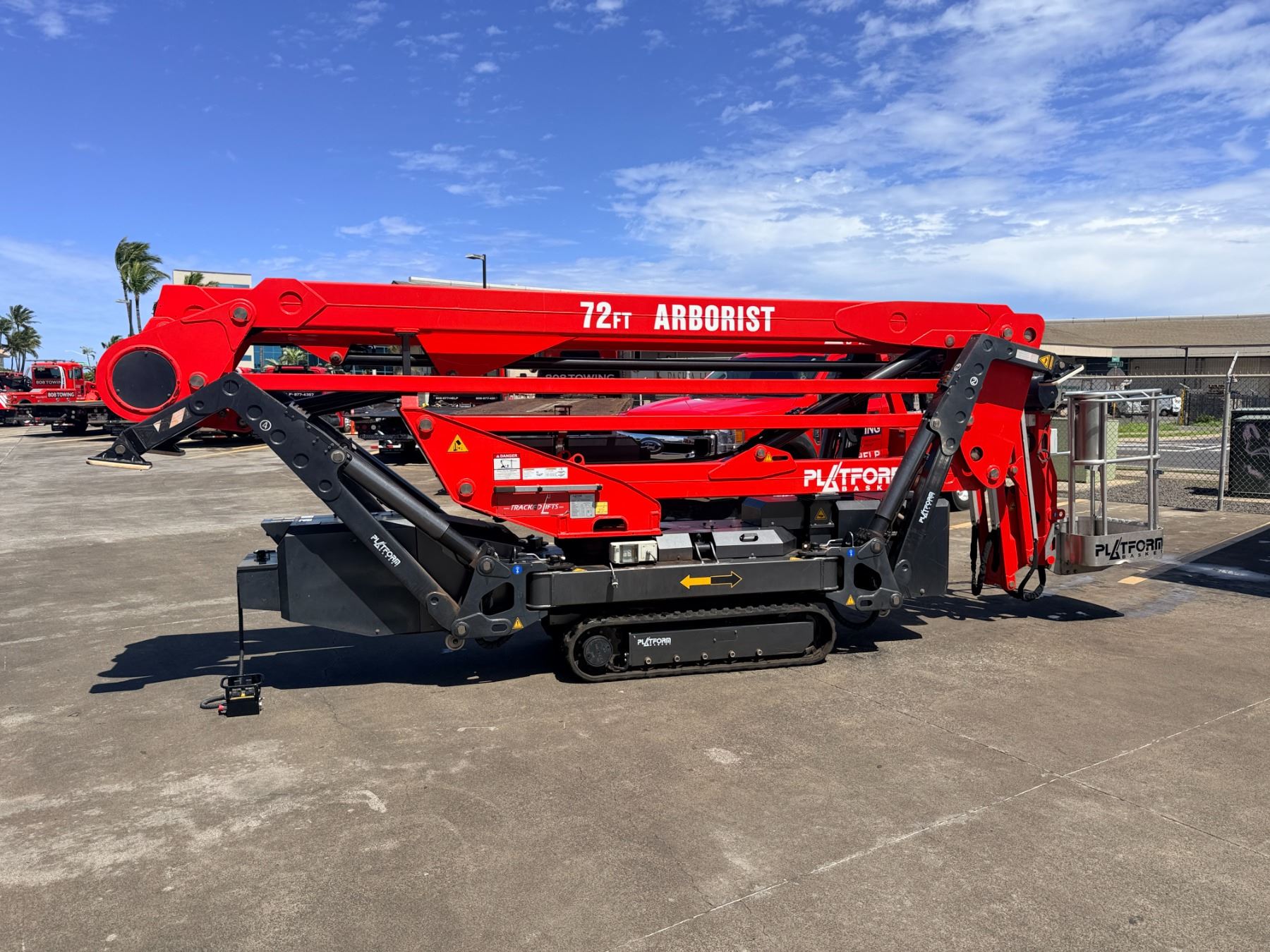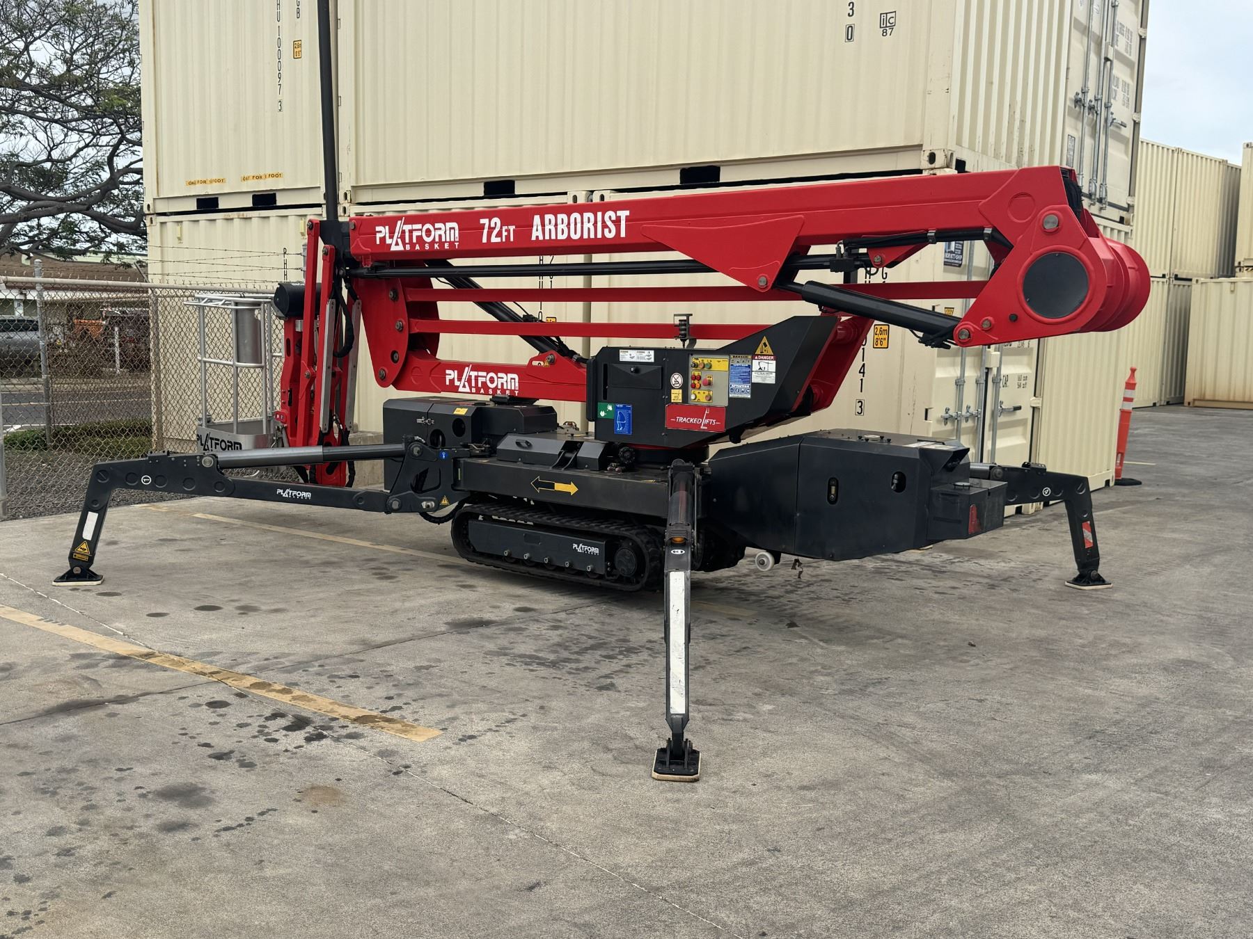 2023 Arborist Track Articulating Aerial Lift with approx. 72-foot working height, 34-foot side reach and stabilizing outriggers to handle uneven terrain. This was purchased from the manufacturer in May of 2023 and shipped to Hawaii from the U.S. mainland. Includes a Belmont utility steel-deck tilt trailer for easy transport. Trailer has no registration, title or paperwork and none will be provided. Trailer was also shipped to Hawaii at the same time. This unit is offered as-is, where-is with no guarantees or representations. Total paid with tax and shipping was $133,793.