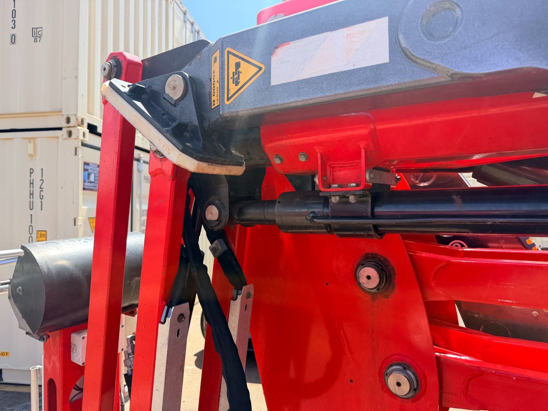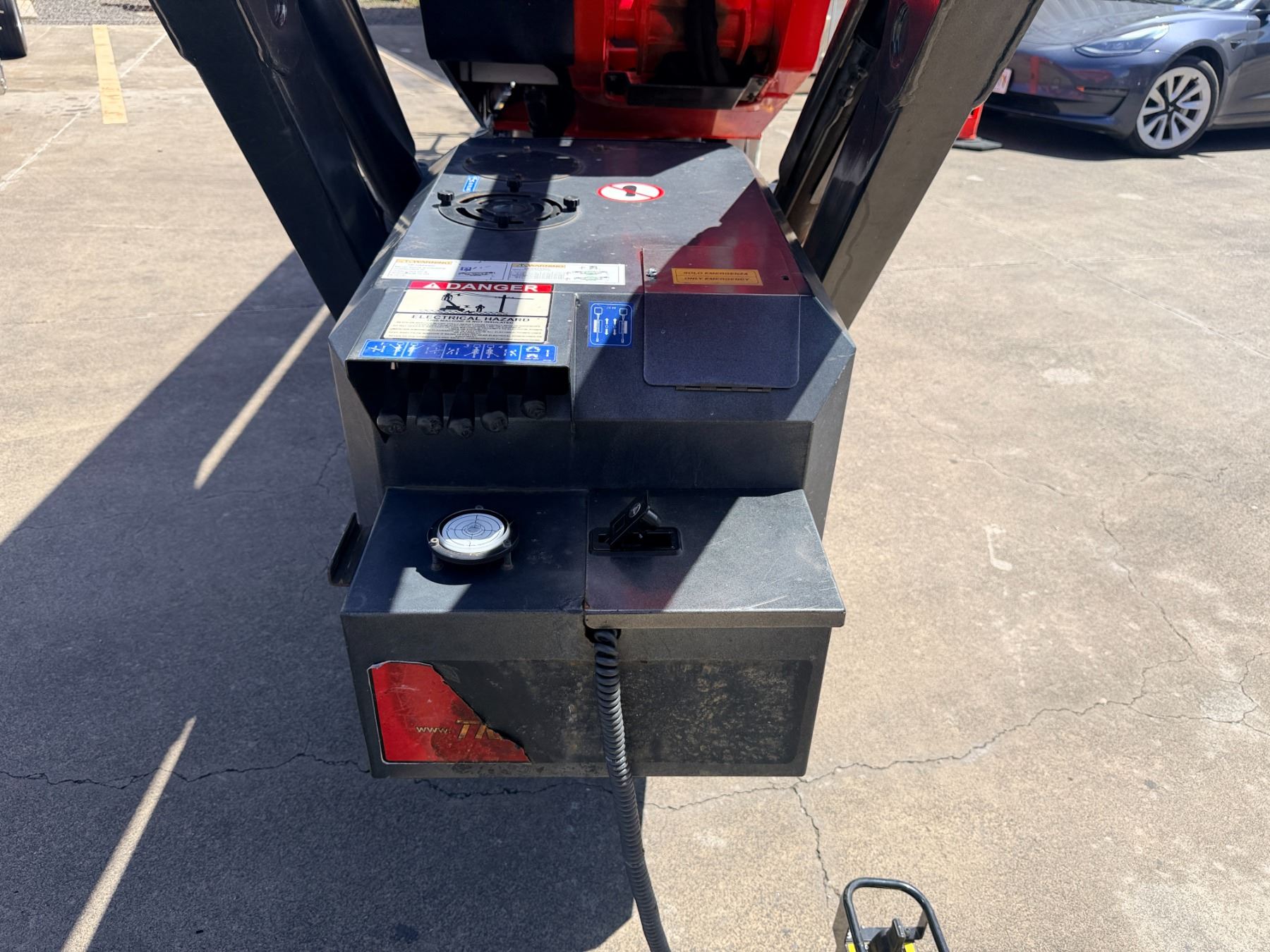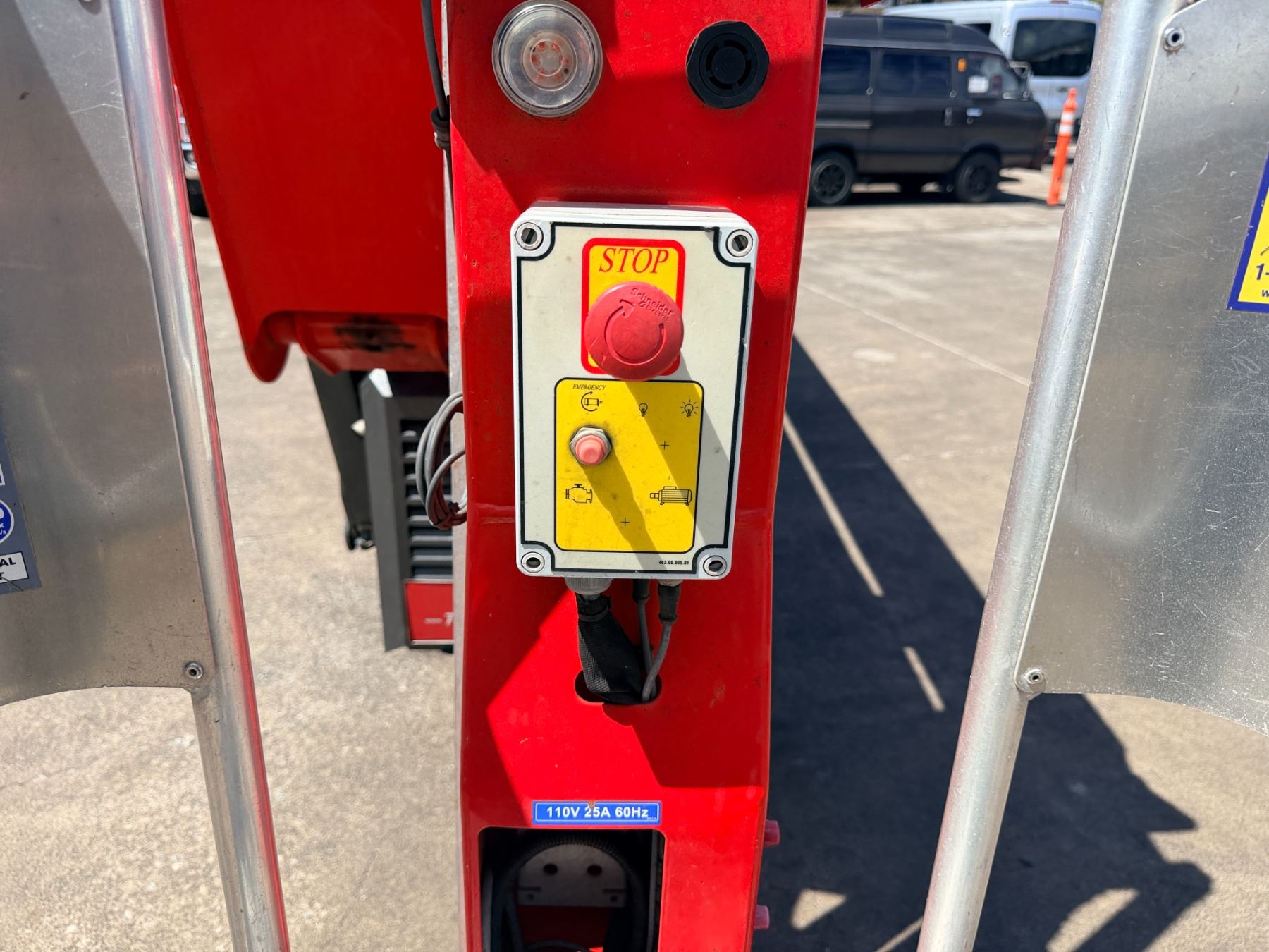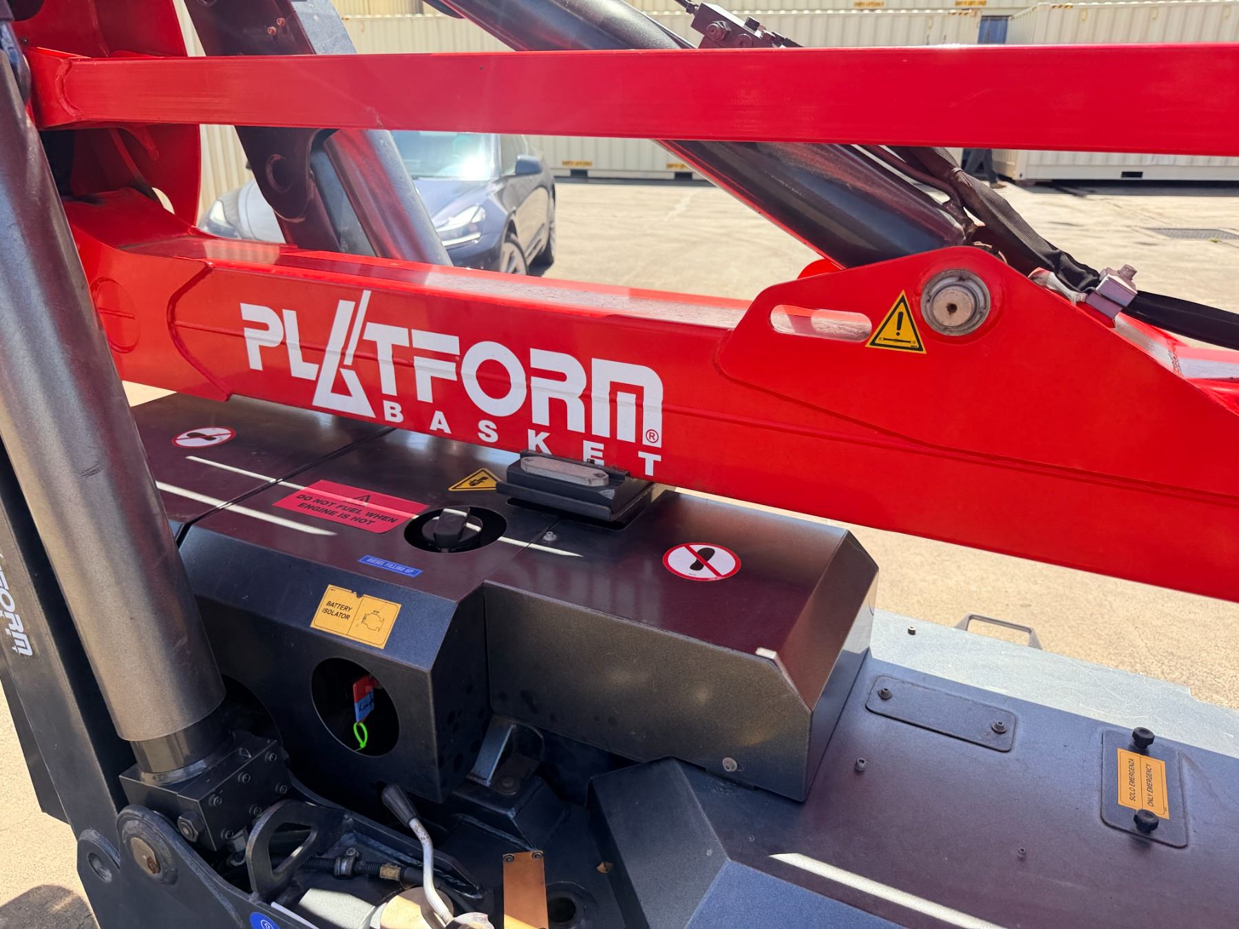 During intake and documentation the machine was started and functions were cycled. The fuel level alarm remained illuminated during operation and is visible in the photos. There may be a slight variation in the hours displayed.