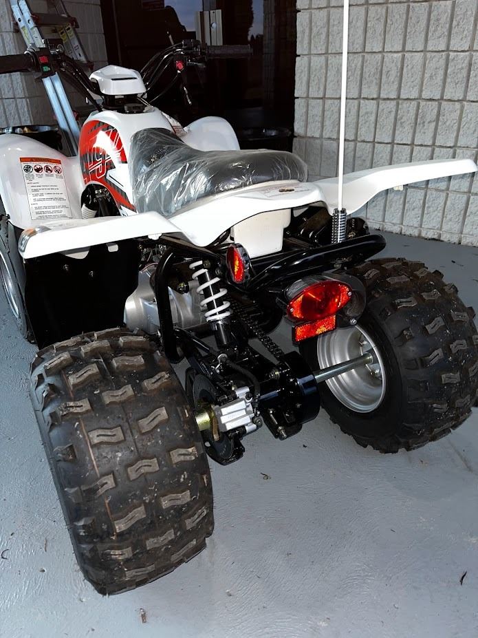 The "ATV X 4 WHEELER ARGO XPLORER XC 90" refers to the Argo Xplorer XC 90, a youth all-terrain vehicle (ATV) designed for riders aged 12 and up. It features a 90cc 4-stroke engine, automatic CVT transmission with reverse and neutral, and several safety features such as a speed-limiting adjustable throttle, a tether cord, and a high-visibility whip flag. Key specifications include a single A-arm front suspension, a swing-arm rear suspension, and dual drum front brakes with a hydraulic disc rear brake