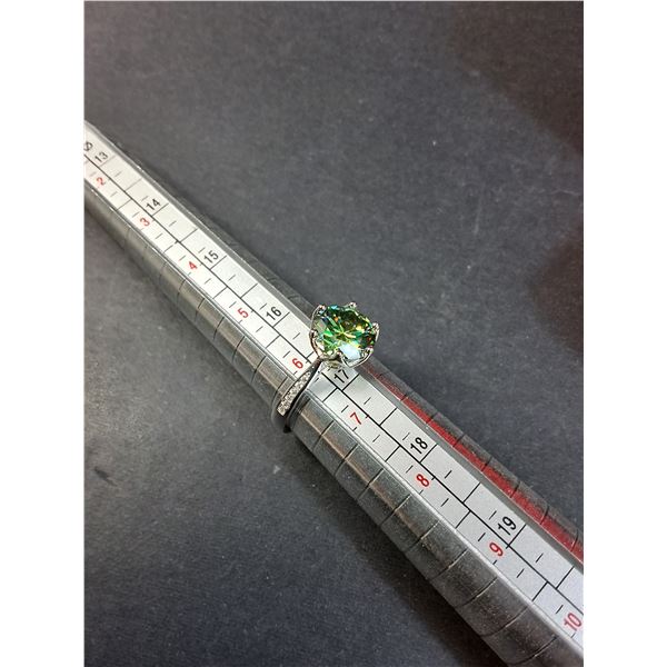 ^ 3 Ct GRA Certified Moissante Stone Blueish Green w/12 Round Cubic Zirconia in Sterling Silver - Size 6.25
