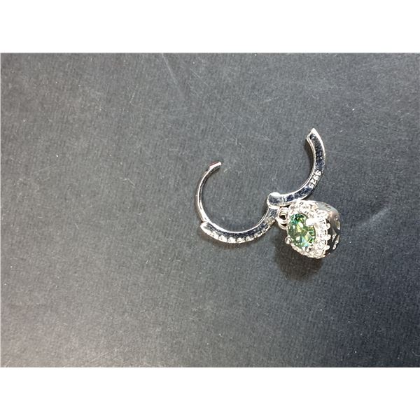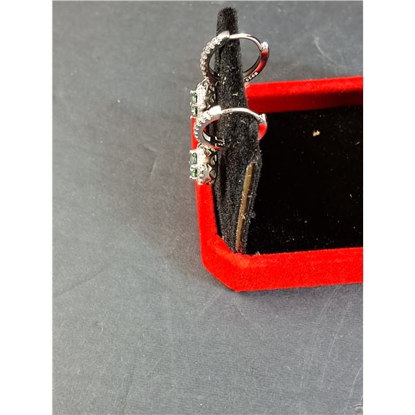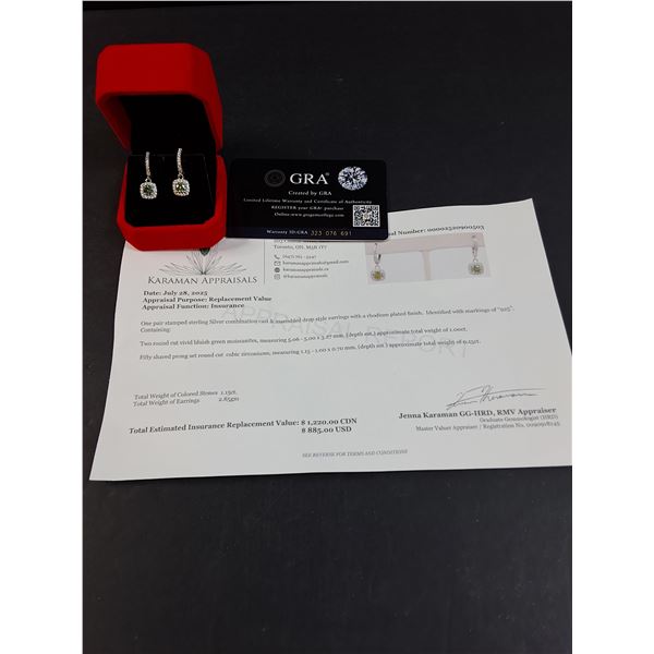 ^ 1 Ct GRA Certified Moissanite Stones Bluish Green Color w/50 Cubic Zirconia Set in Sterling Silver Earrings