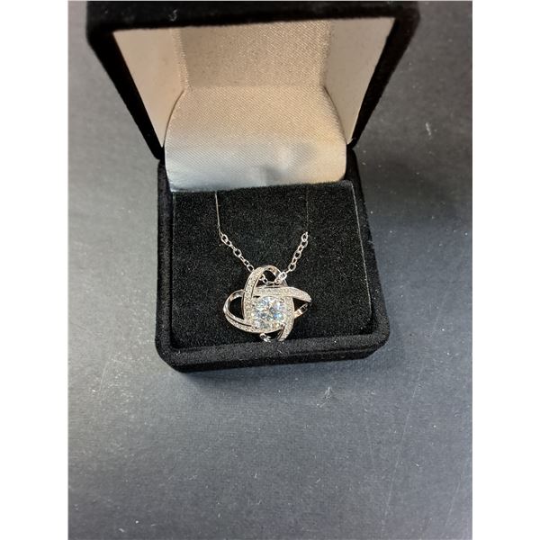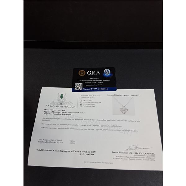 ^ 1 Ct GRA Certified Moissanite Stone w/40 Cubic Zirconia Set in Dual Halos Sterling Silver Pendant Necklace
