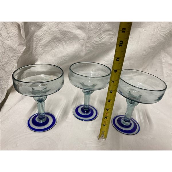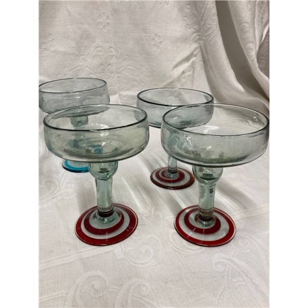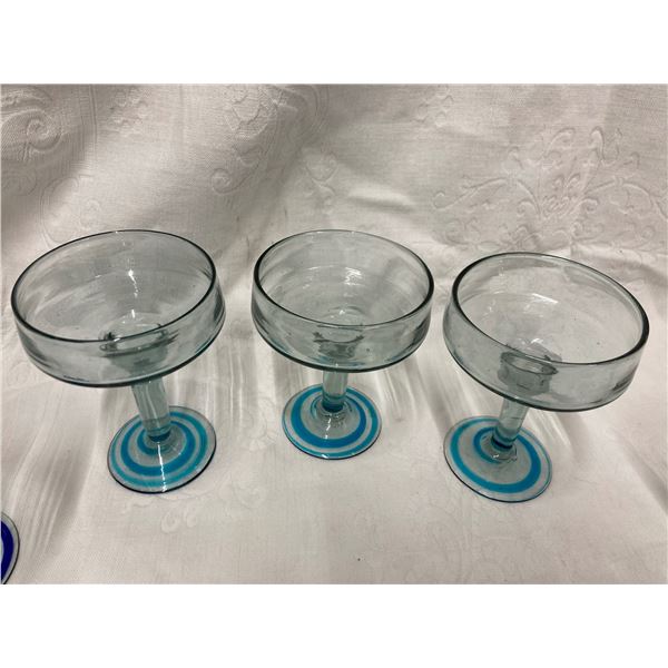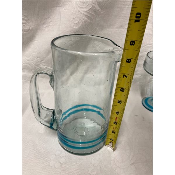 HAND-BLOWN MEXICAN GLASSWARE, INCLUDING SEVERAL MARGARITA GLASSES AND A PITCHER