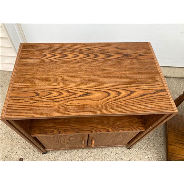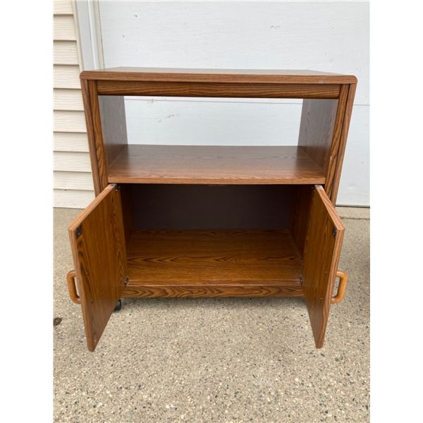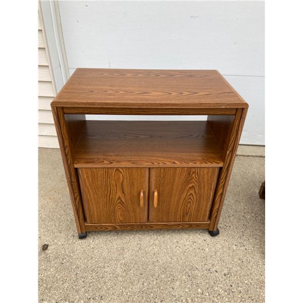 ONE HAS CABINET TYPE DOORS FOR STORAGE