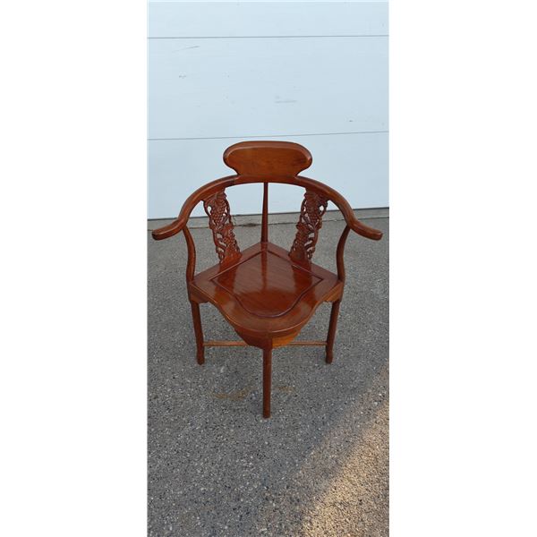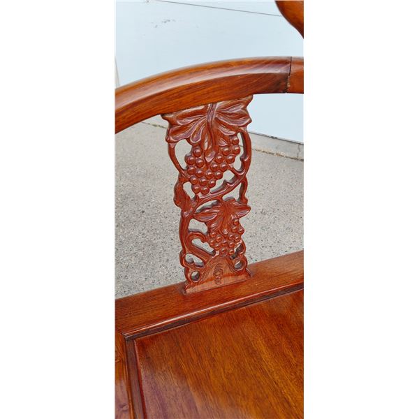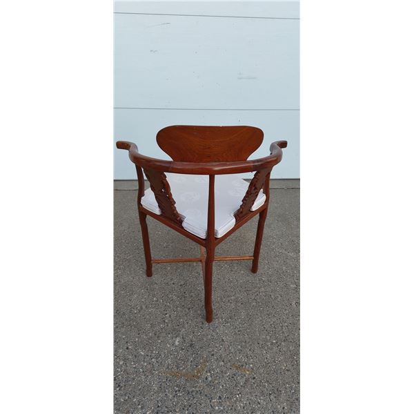 ANTIQUE ASIAN CORNER CHAIR - ROSEWOOD WITH CARVED GRAPE MOTIF AND CUSTOM-MADE PADDING