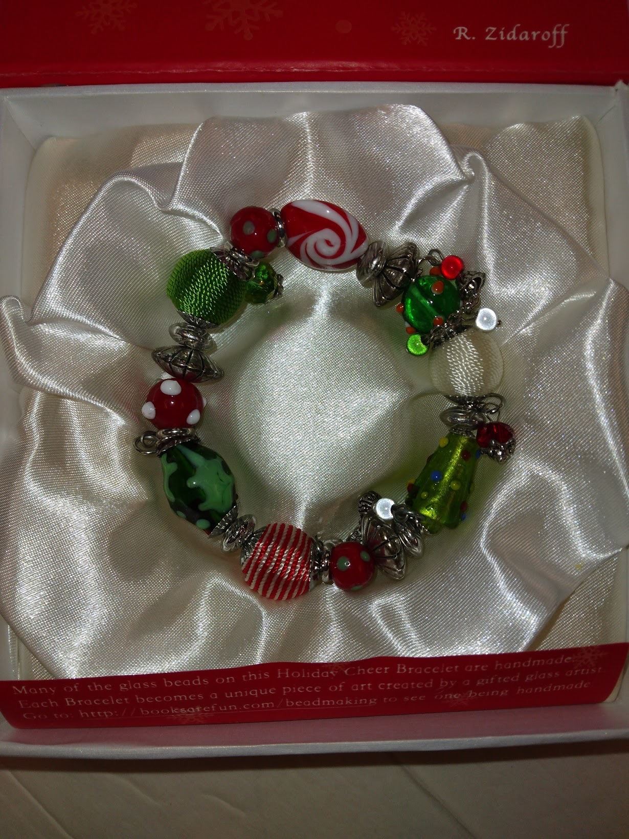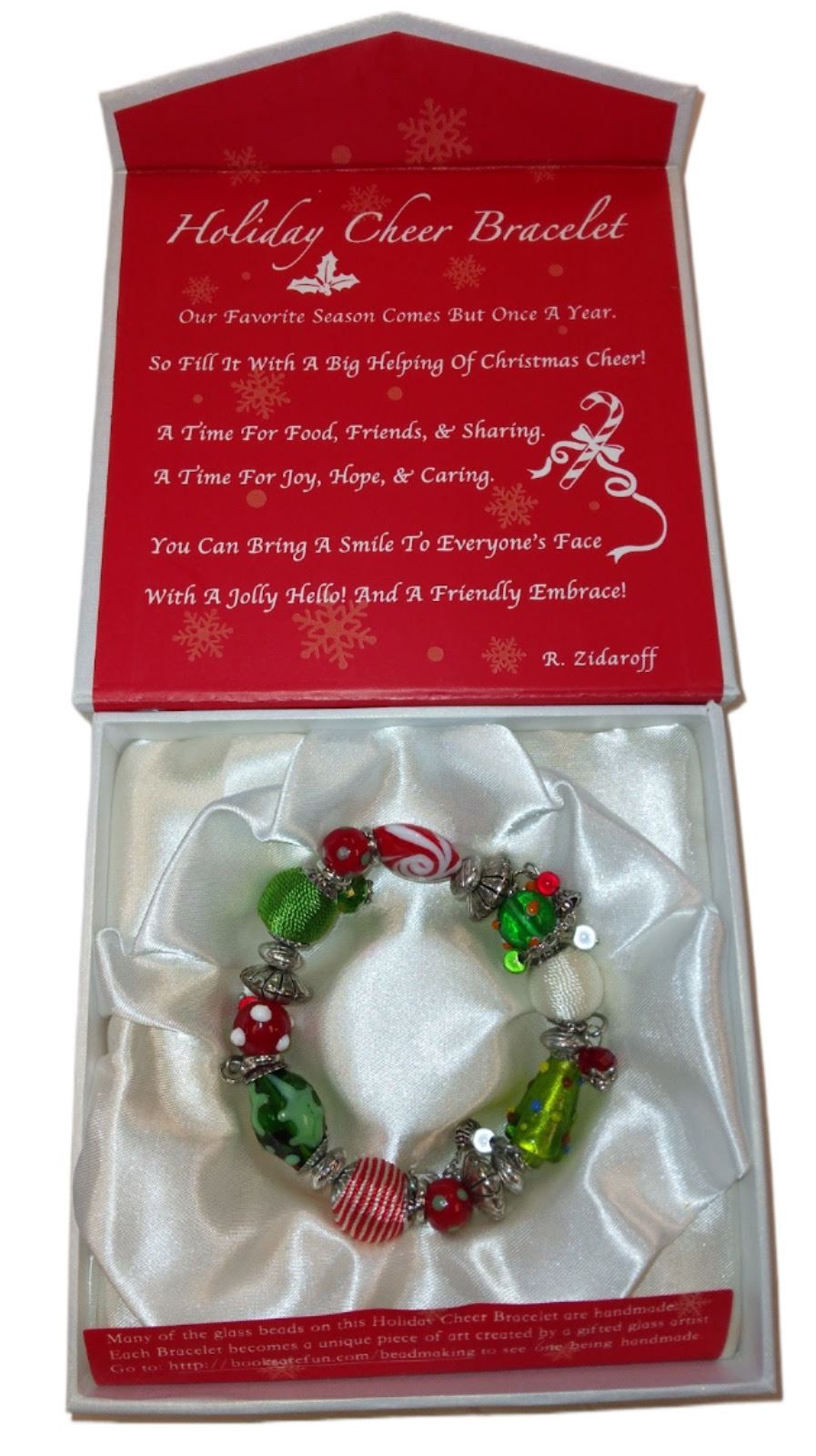 MANY OF THE GLASS BEADS ON HOLIDAY CHEER BRACELET ARE HOMEMADE