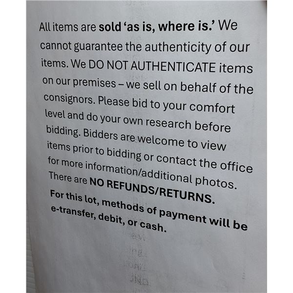 Please note this lot must be paid by debit, e-transfer, or cash.