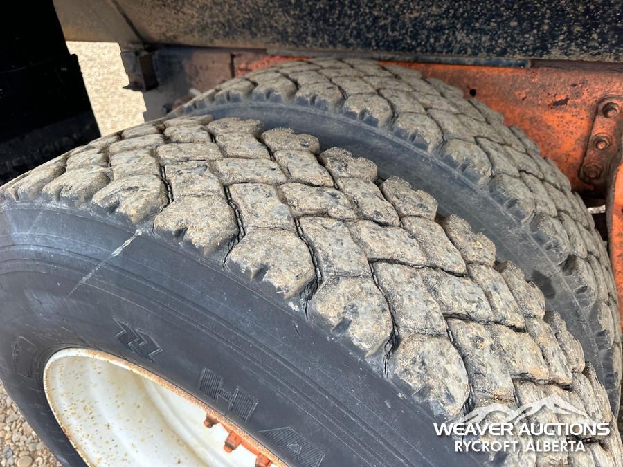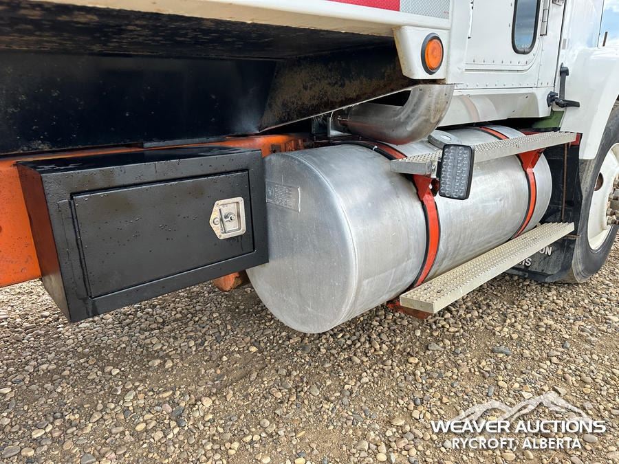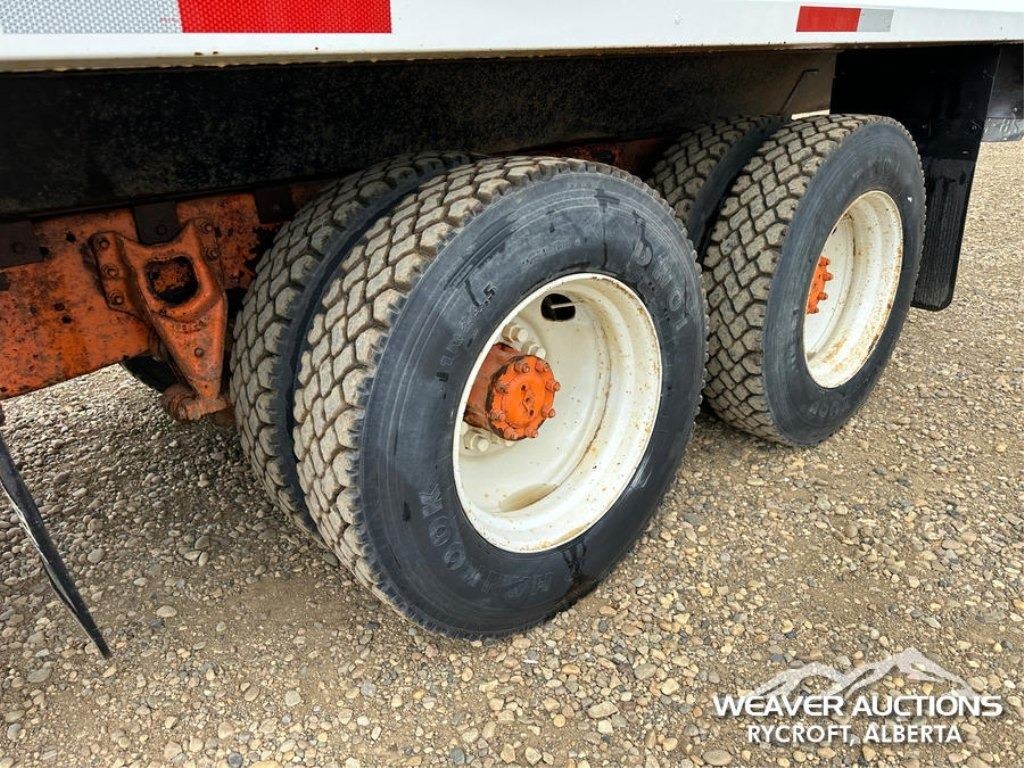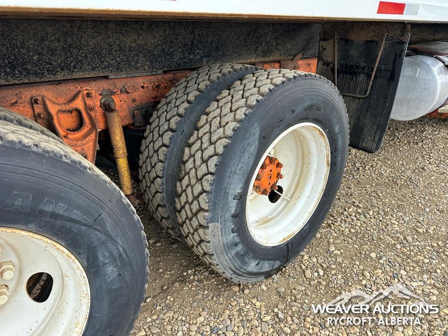 Specifications: A/R SUSPENSION, ENGINE BRAKE, SINGLE DIFF LOCK, SPICER I-132 13,200 LB FRONT, RA472 IH 40,000 LB REAR, 4.10 RATIO, 201 IN WB, SWS 17 FT STEEL GRAIN BOX, MANUAL ROLL TARP, SILAGE END GATE, PLUMBED FOR PUP