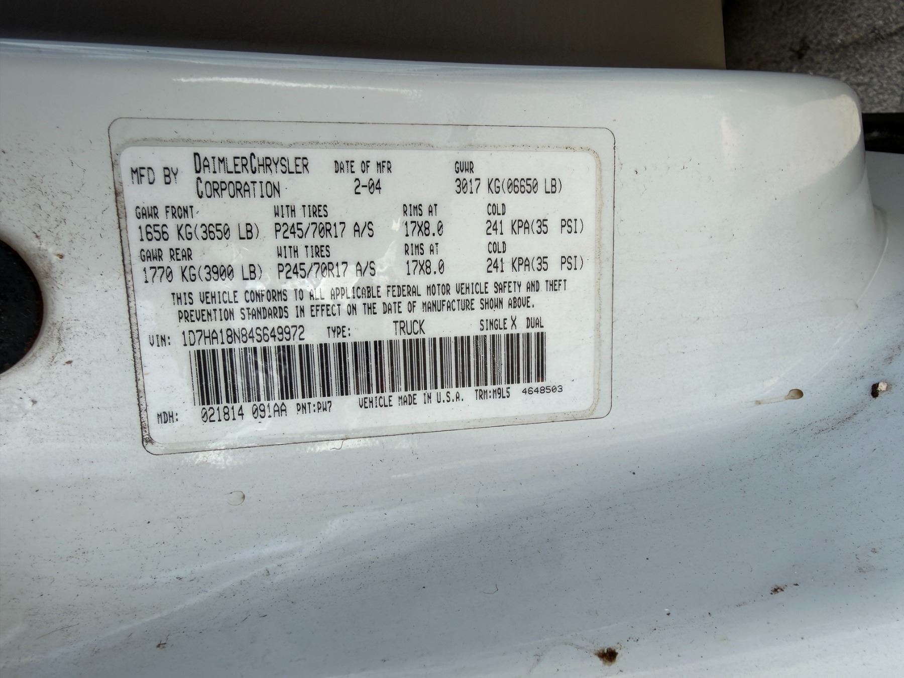 2004 Dodge RAM 1500 SLT Pickup Truck, Lic. 642TTB, 74458 Miles (Starts & Runs - Needs Repair).