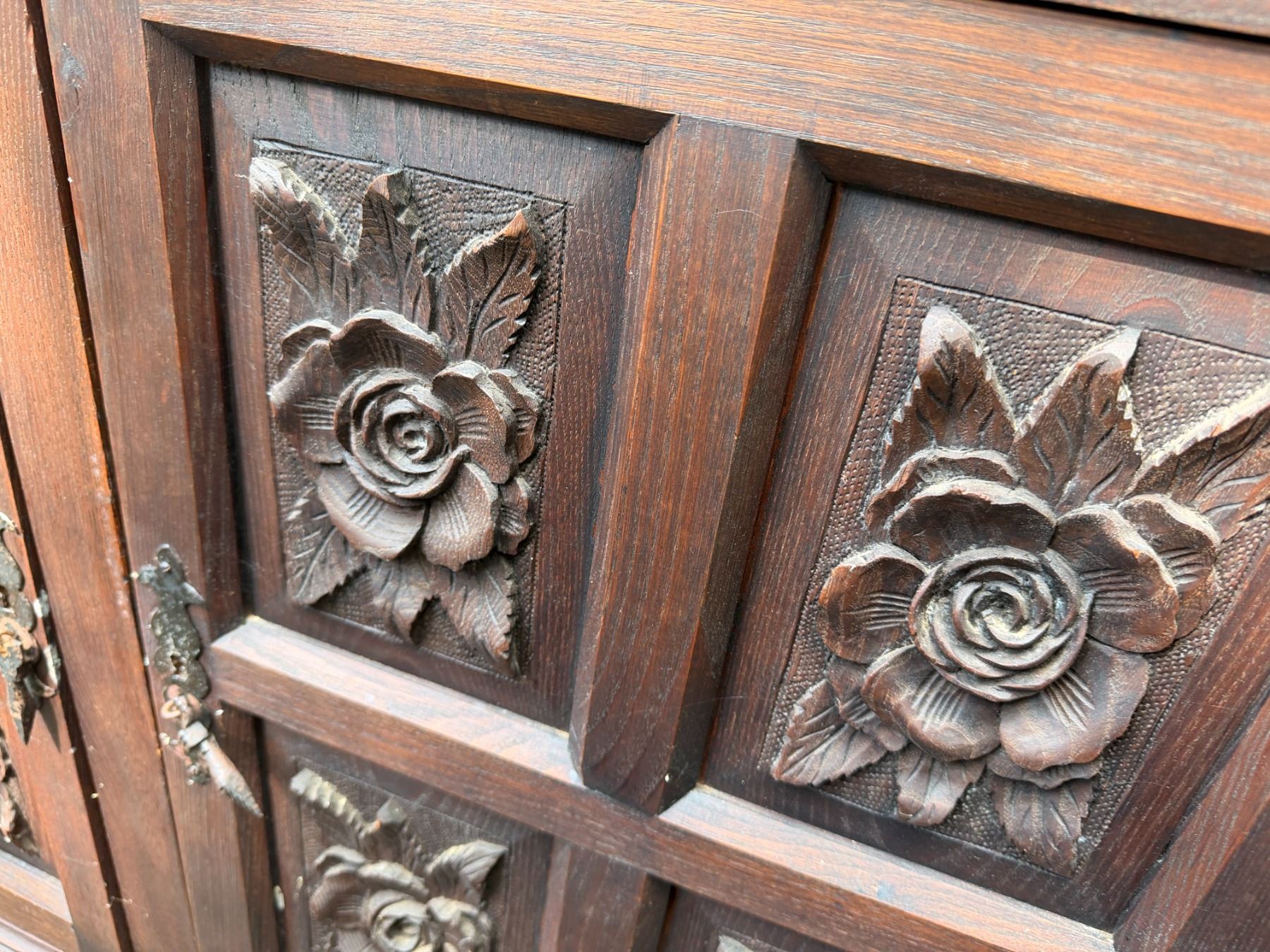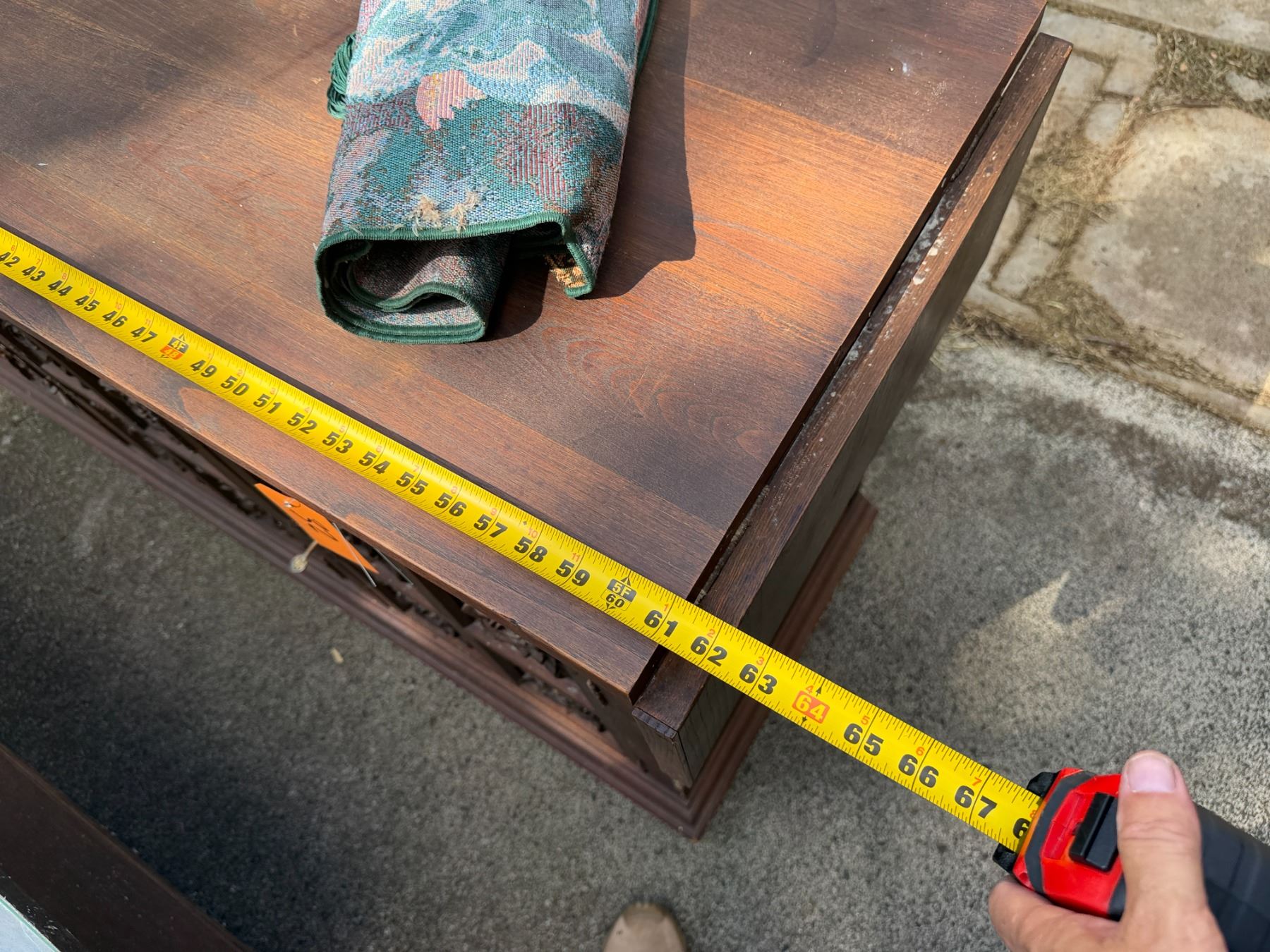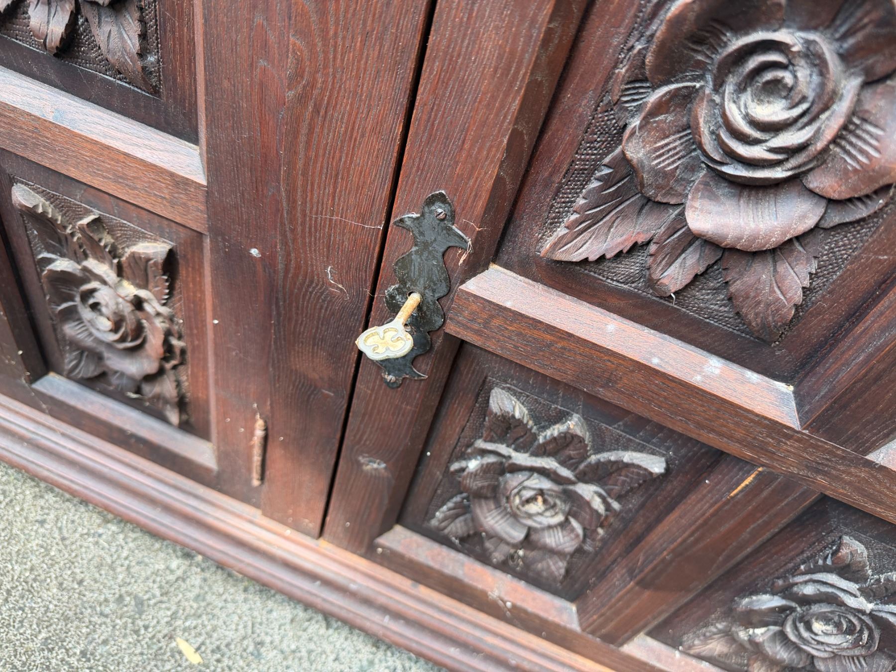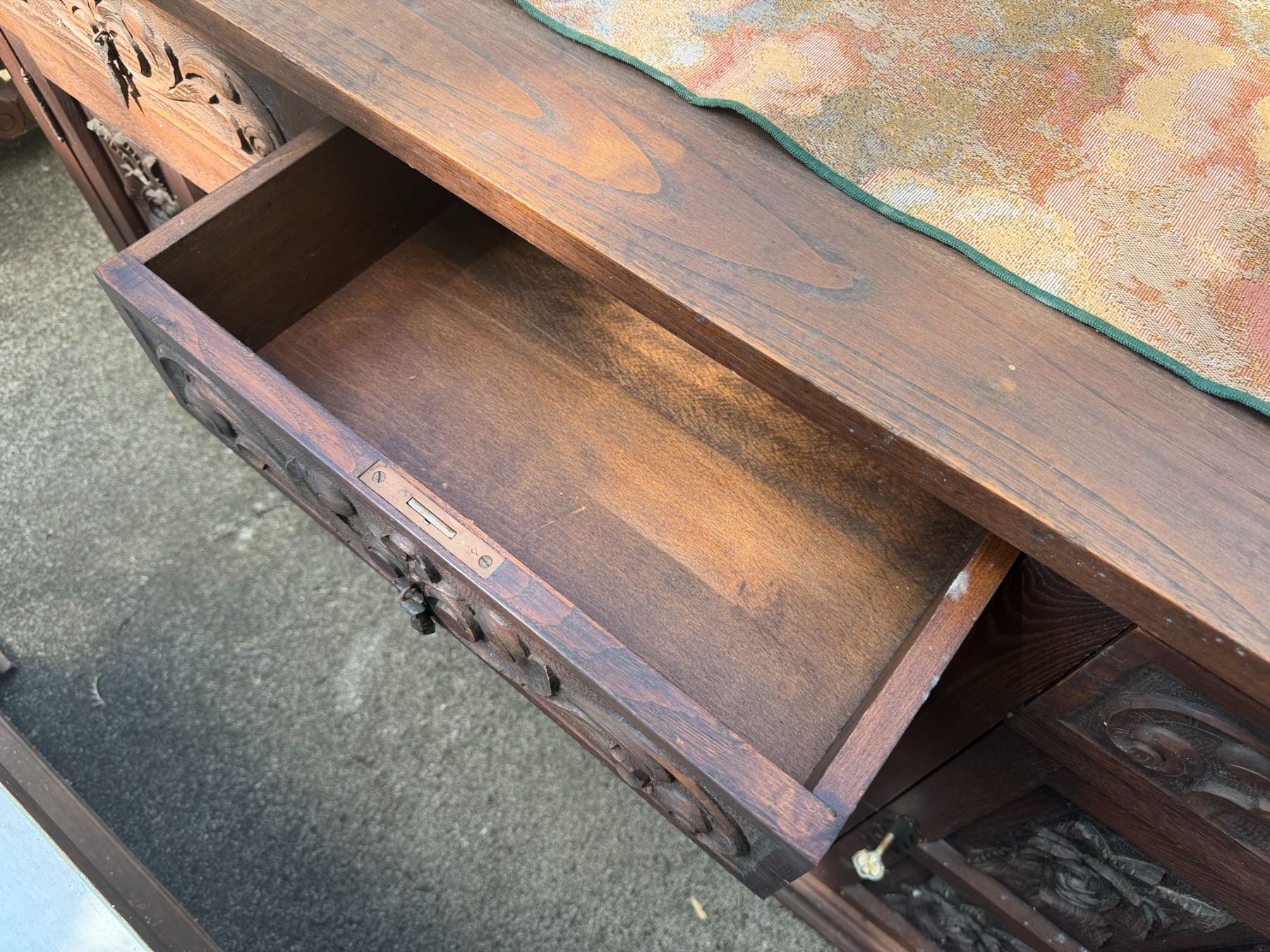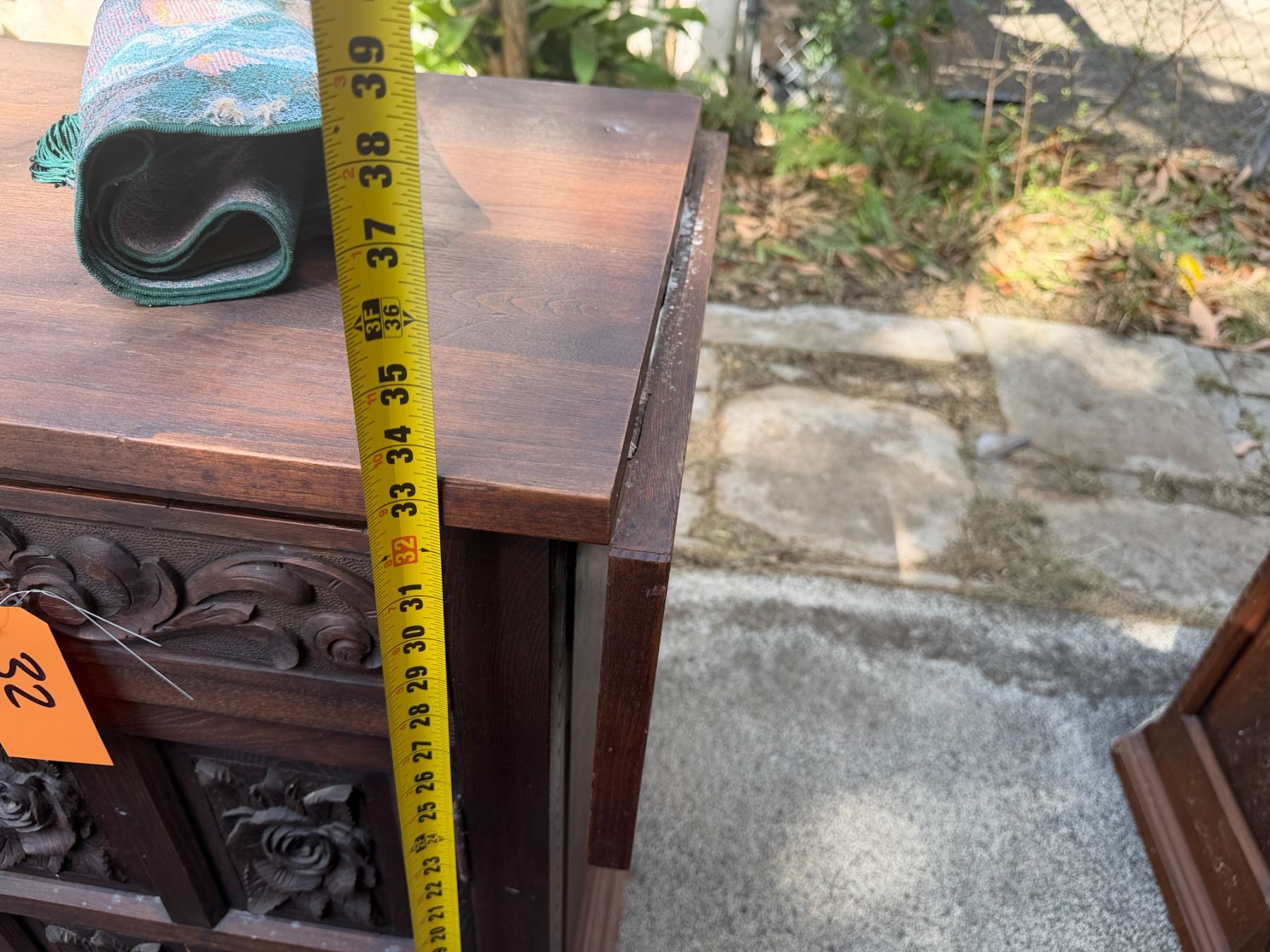 Lot 32 Carved Wooden Sideboard Cabinet w/ 3 Doors, 3 Drawers & Folding Leaf Top 62" x 20" x 33"H