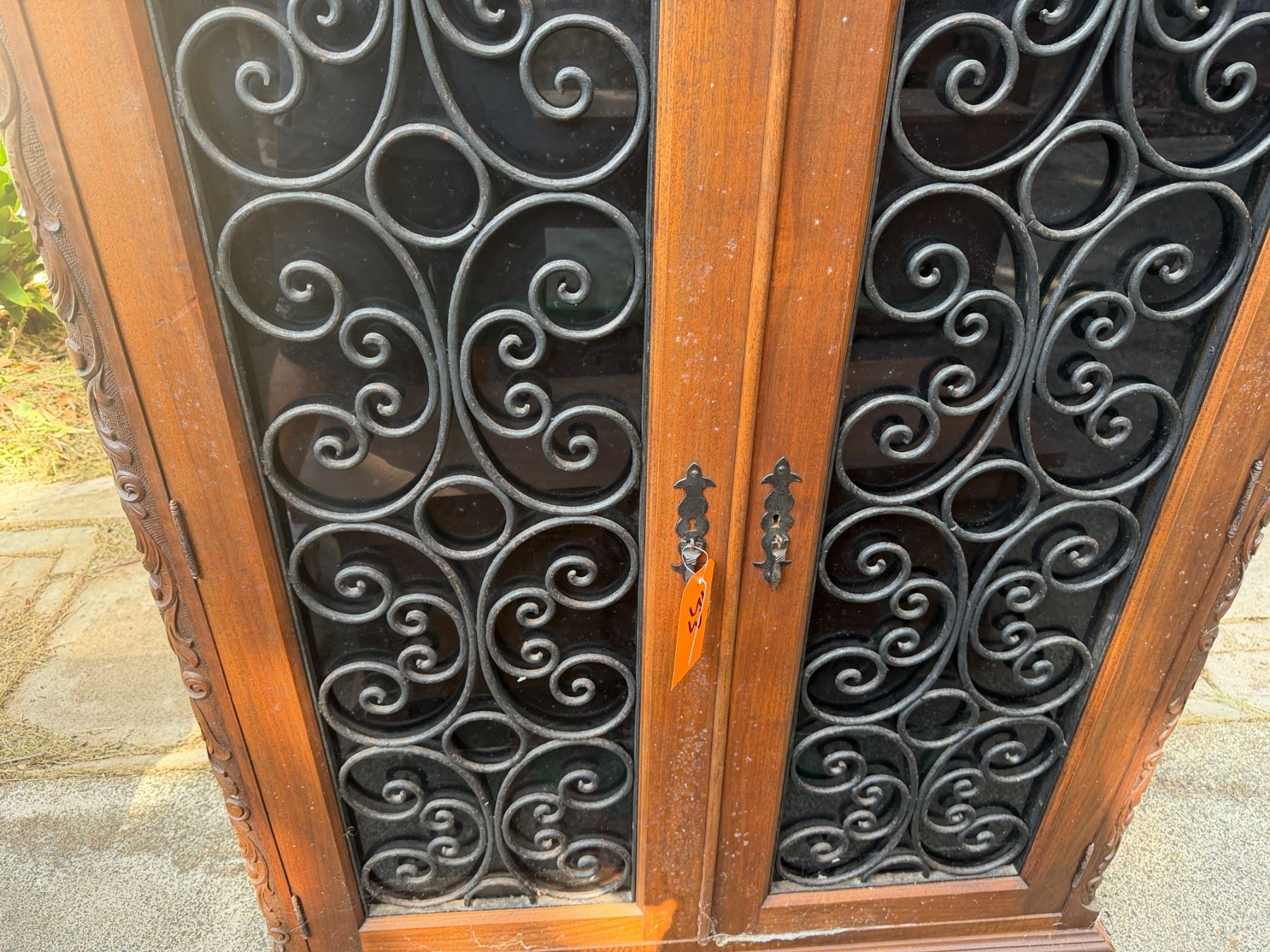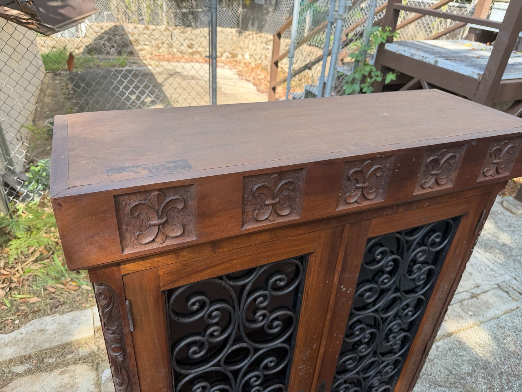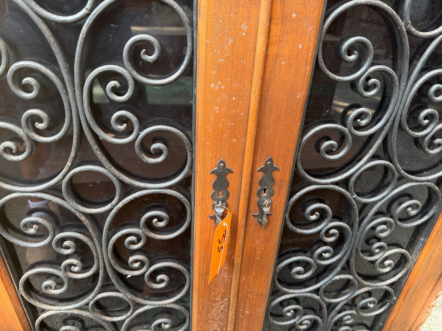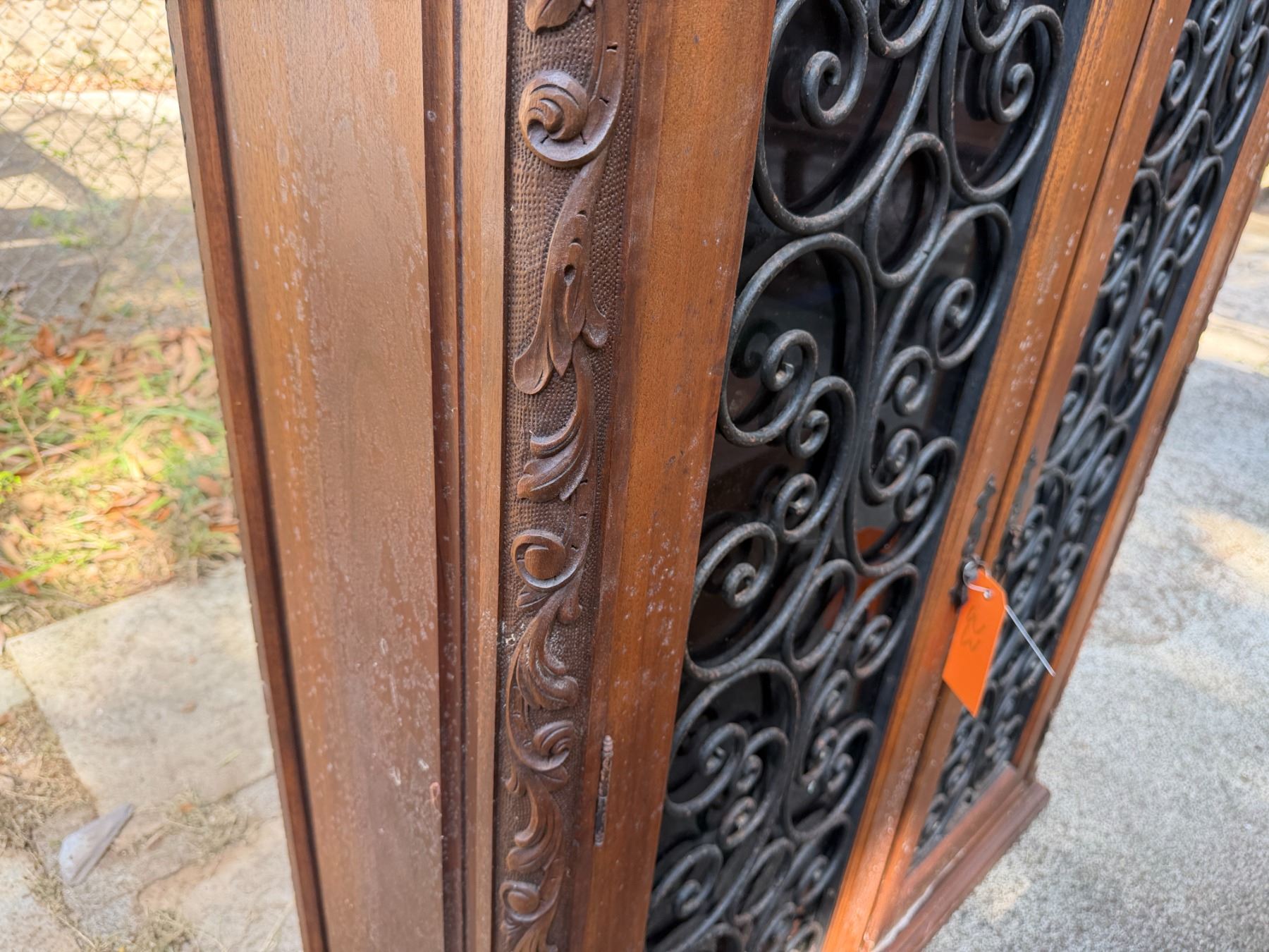 Lot 33 Wooden 2-Door Cabinet w/ Metal Filigree Design 43" x 15" x 53"H