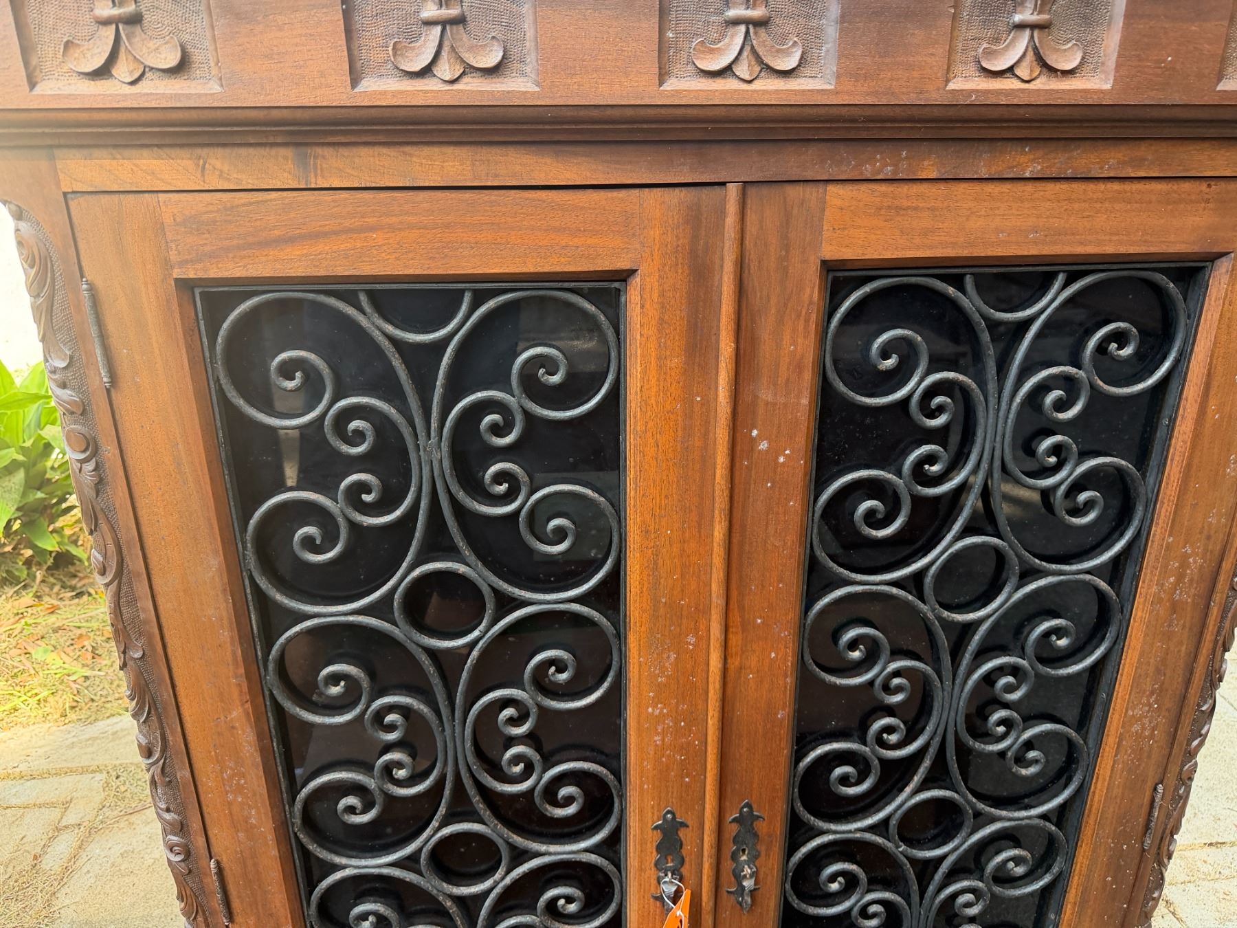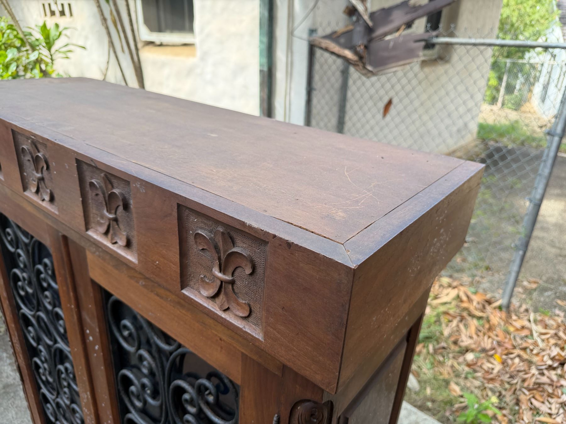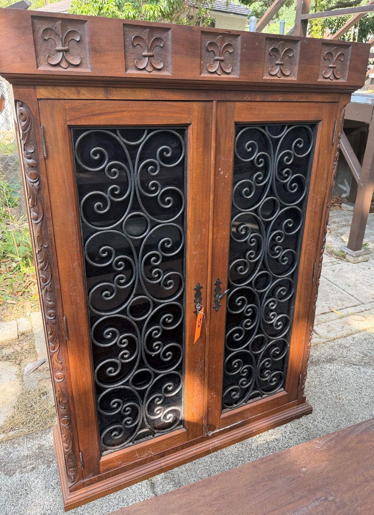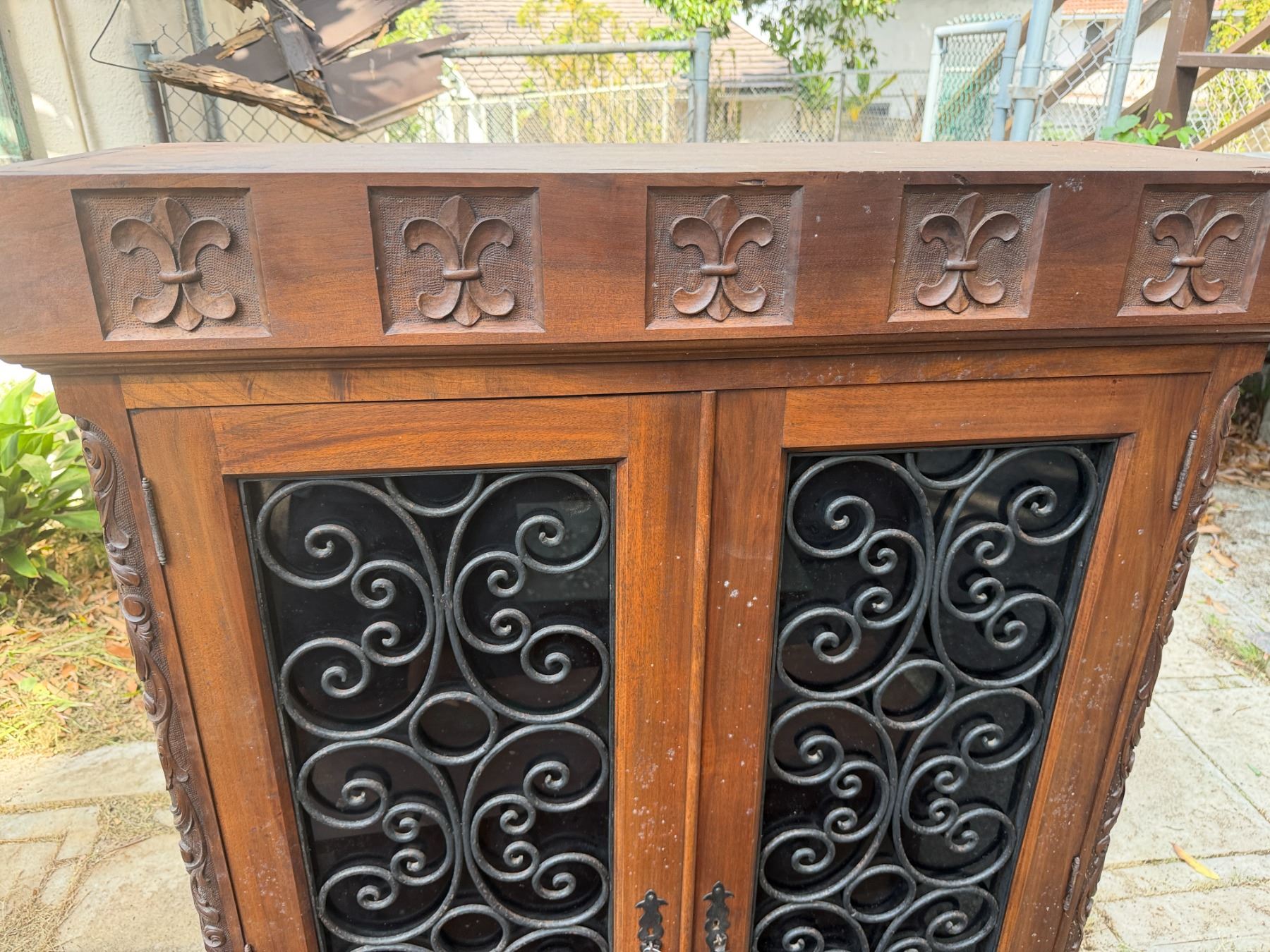 Lot 33 Wooden 2-Door Cabinet w/ Metal Filigree Design 43" x 15" x 53"H