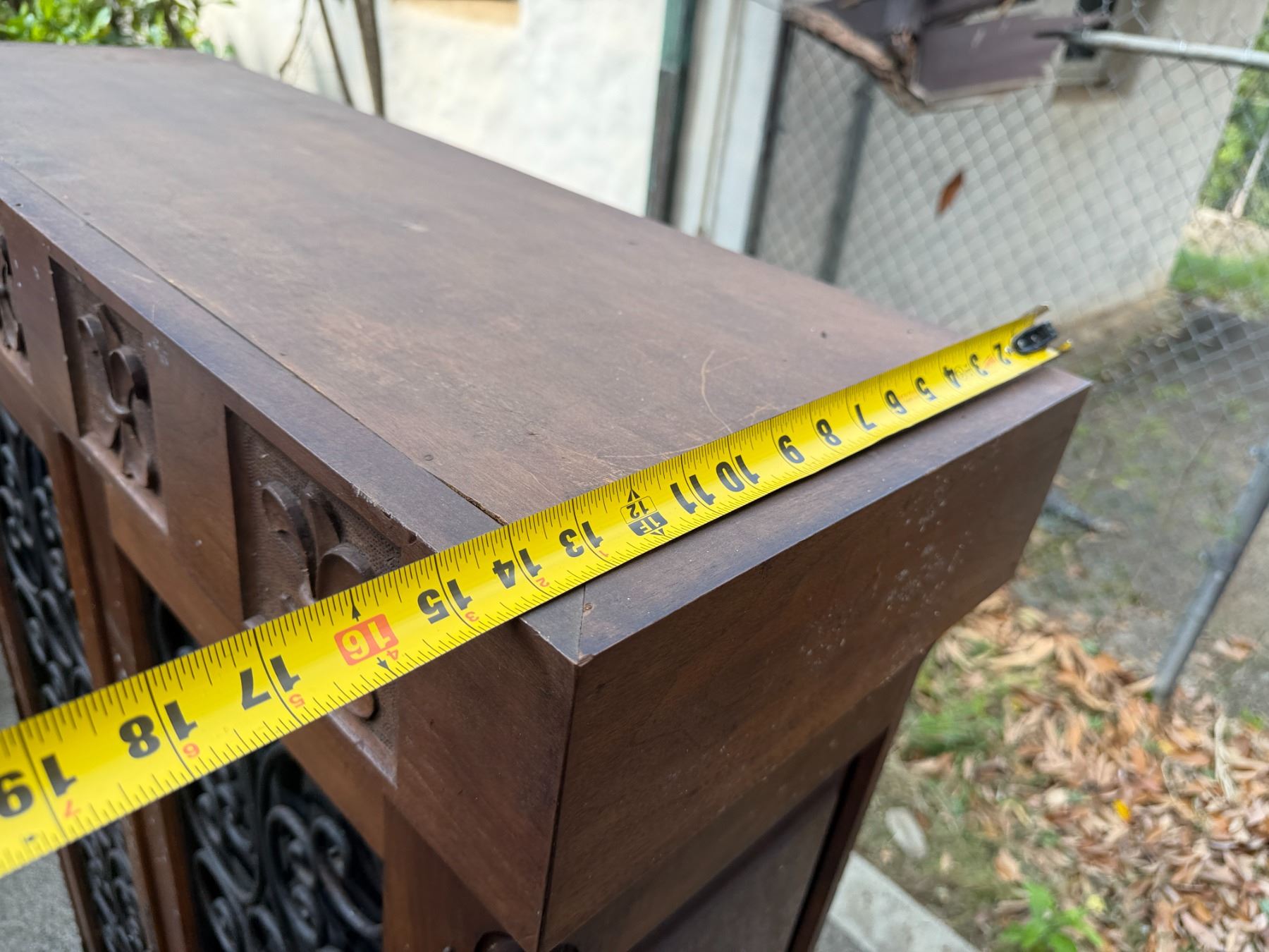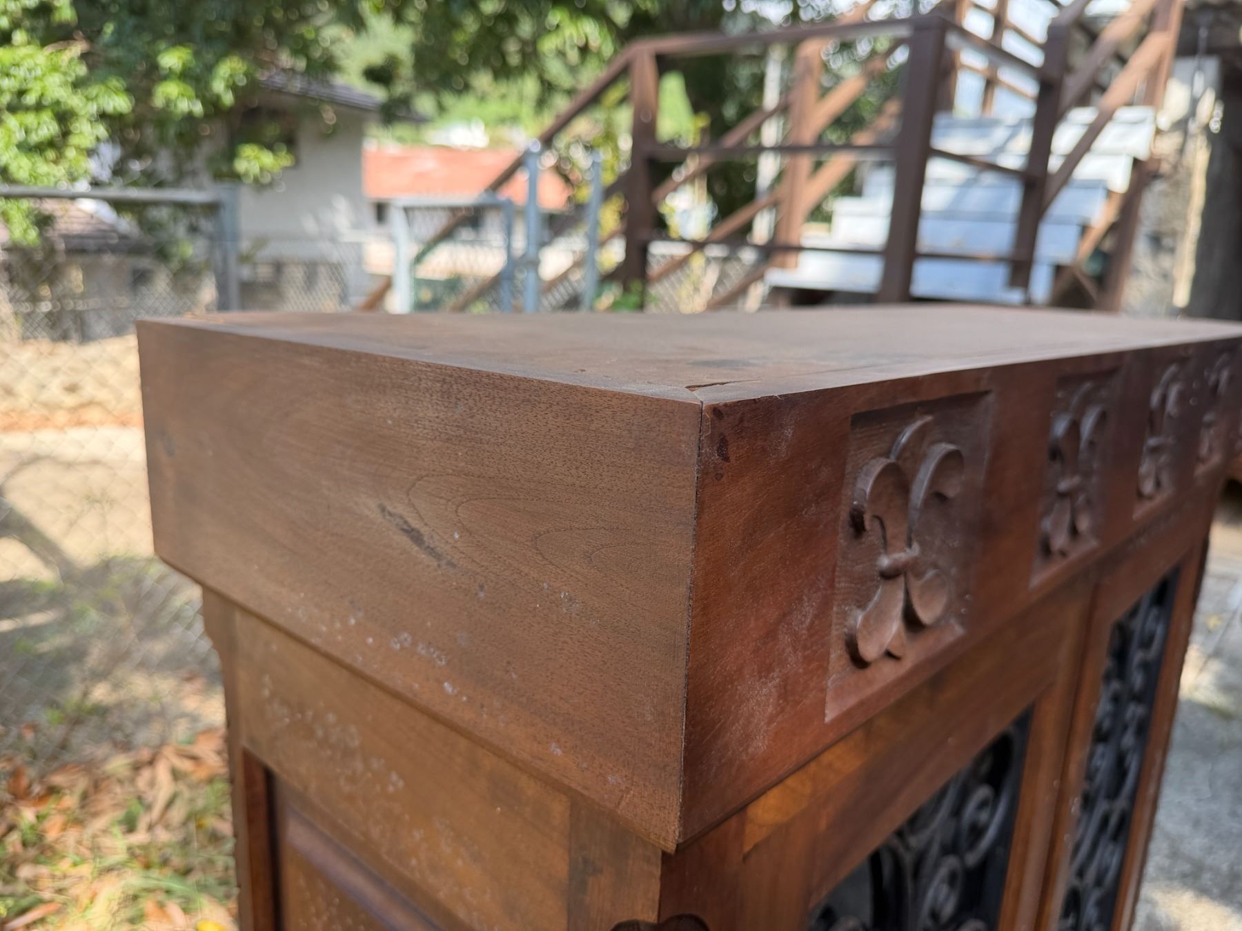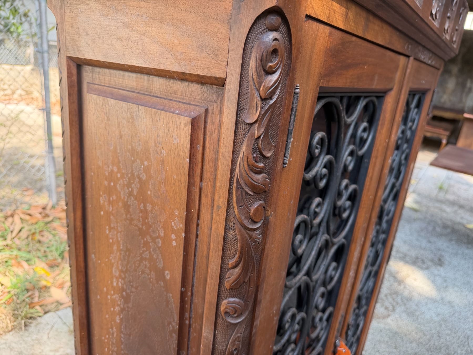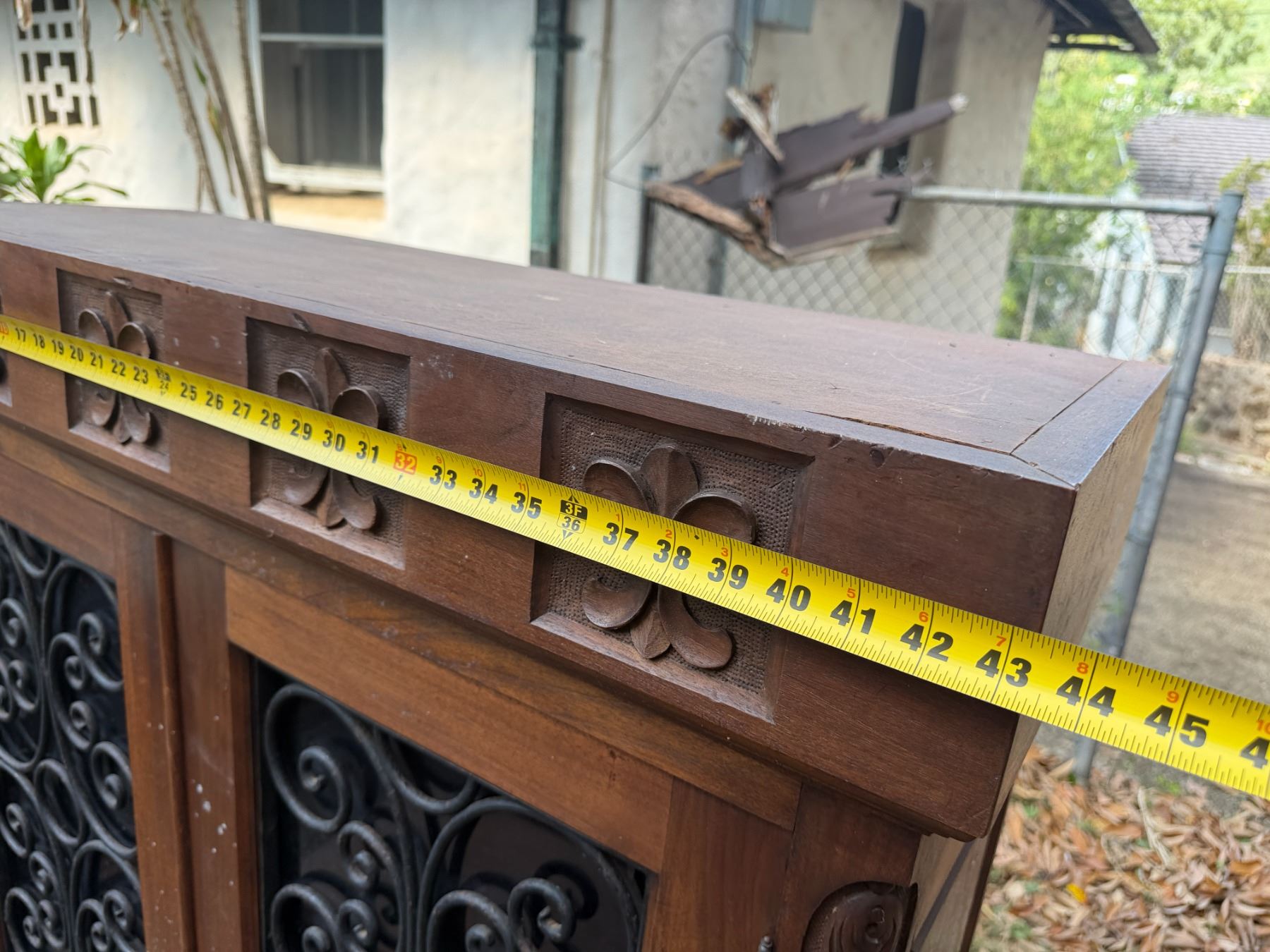 Lot 33 Wooden 2-Door Cabinet w/ Metal Filigree Design 43" x 15" x 53"H