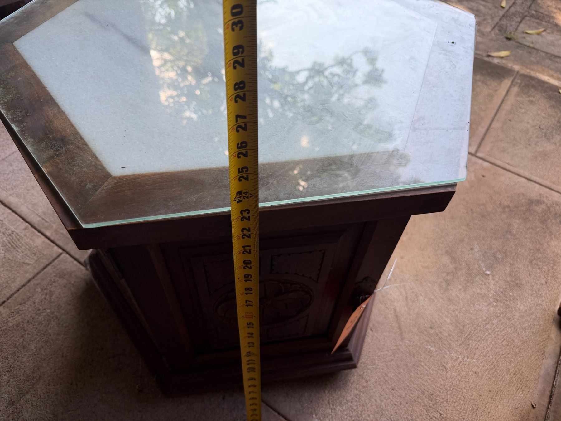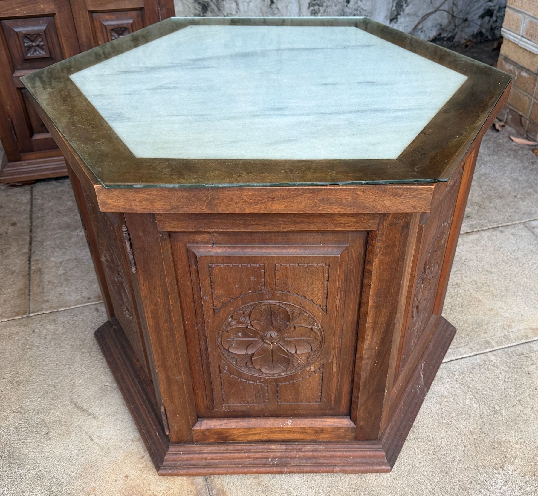 Wooden Hexagon Shaped Cabinet w/ Clear Top 26" Dia, 24"H