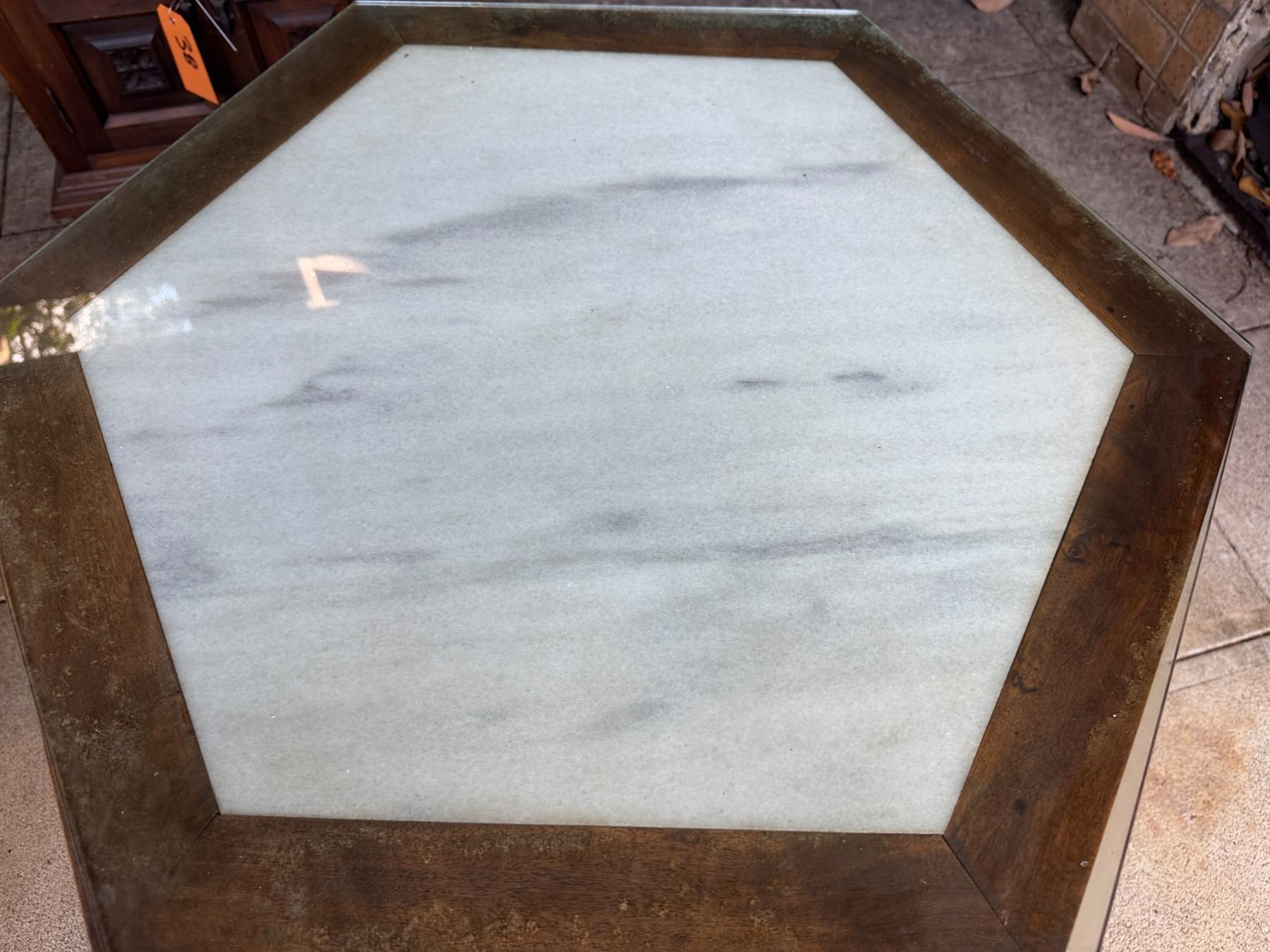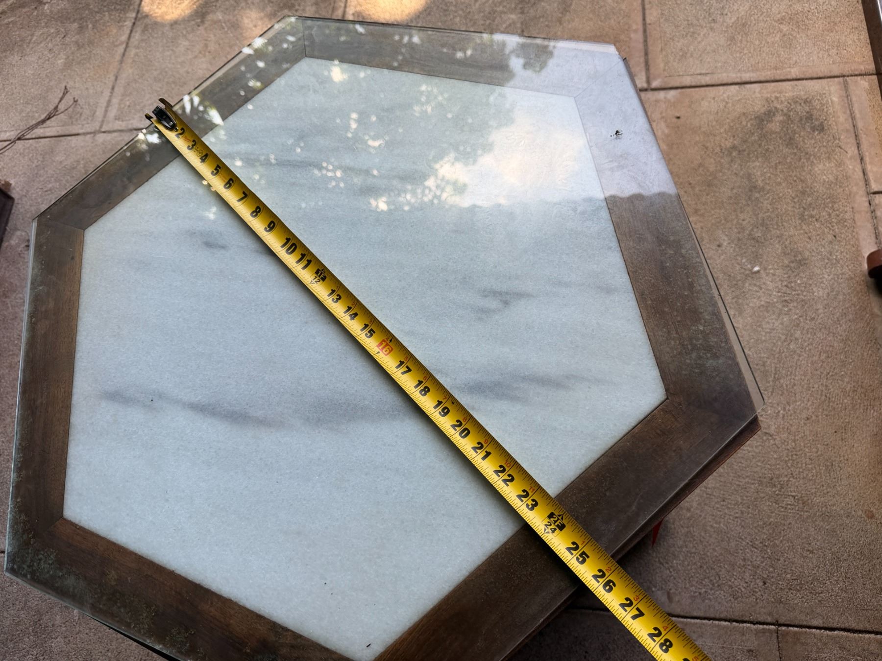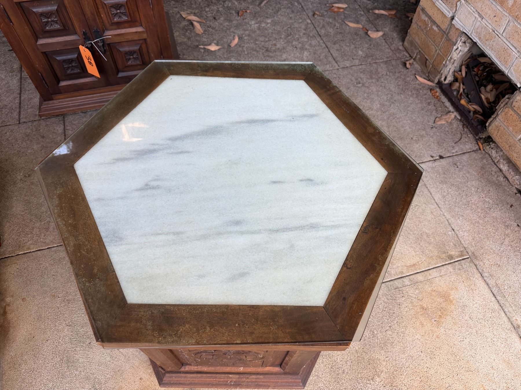 Lot 39 Wooden Hexagon Shaped Cabinet w/ Clear Top 26" Dia, 24"H