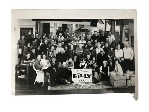 This 8x10" black and white photograph captures the cast and crew of the short-lived 1991 sitcom, Billy, frozen in time. The image, taken on set to wrap the first season, offers a glimpse behind the scenes of the show. The black and white format lends a timeless quality to the photo, emphasizing the faces and expressions of those present. A candid shot, a moment captured between takes, offering a more intimate view of the Billy family, both in front of and behind the camera. This photograph serves as a poignant reminder of a show that, while brief, undoubtedly holds a special place in the memories of those who worked on it and those who enjoyed watching it. From the collection of one of the actors on the show who was not in attendence the day this photo was taken. Ah, you're likely thinking of the 1992 sitcom Billy starring Billy Connolly!