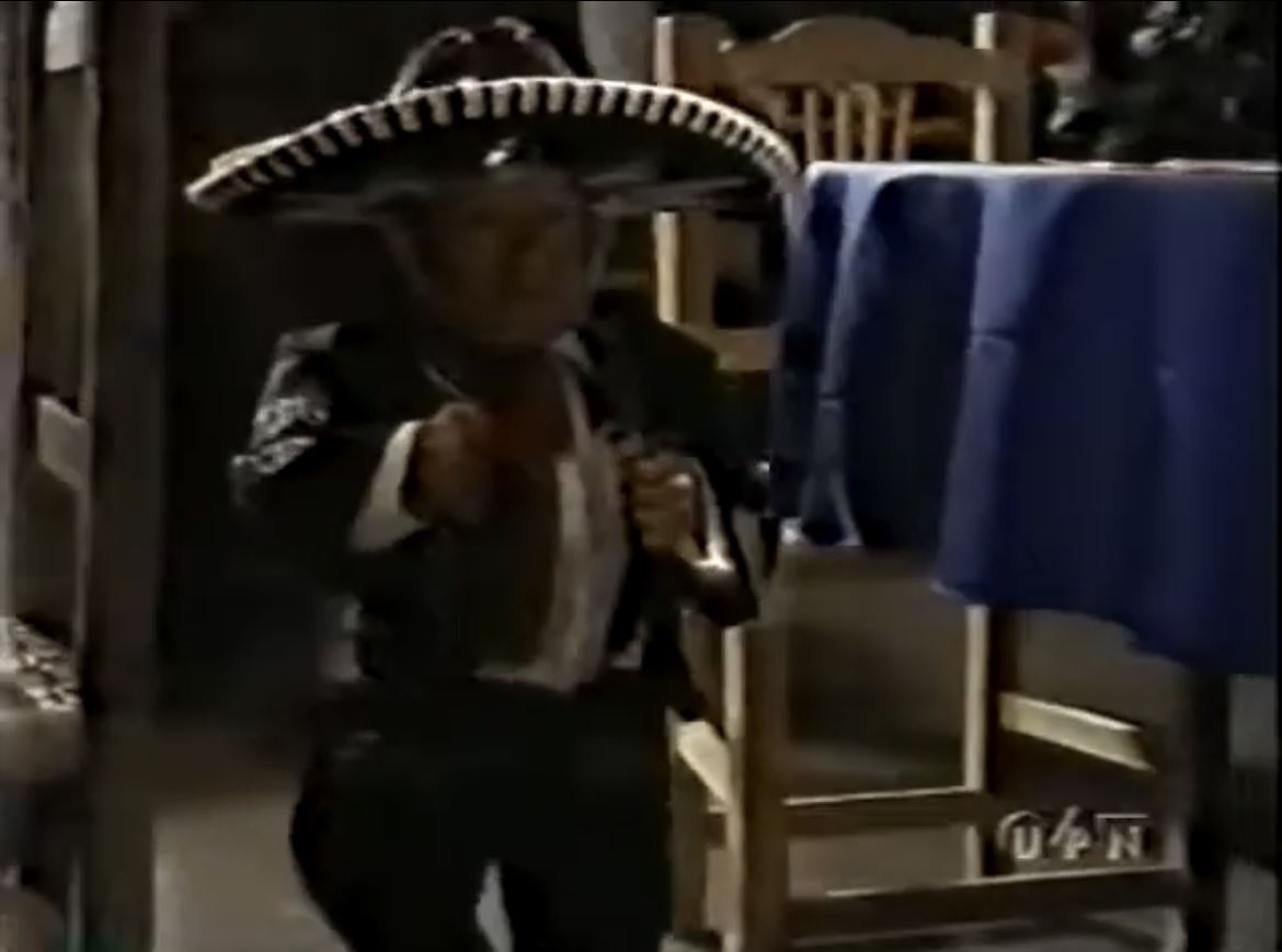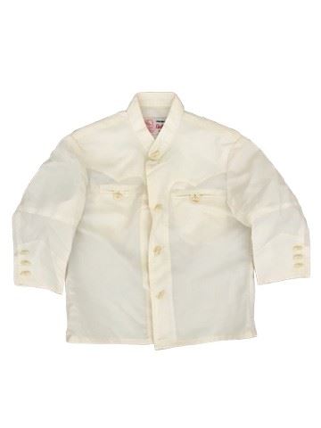 Shasta McNasty (1999 - 2000) TV show - Vern Valentine (Vern Troyer) appeared on a few episodes of this UPN show as the bartender/owner of the local bar. He wore this shirt under the mariachi outfit (episode 2) he served chips and salsa from. It is a cream colored dress shirt with ivory colored barrel style buttons made by Prendas Tipicas Gutierrez in Mexico. Rust color stain on the left sleeve.
