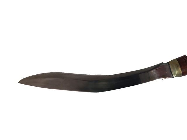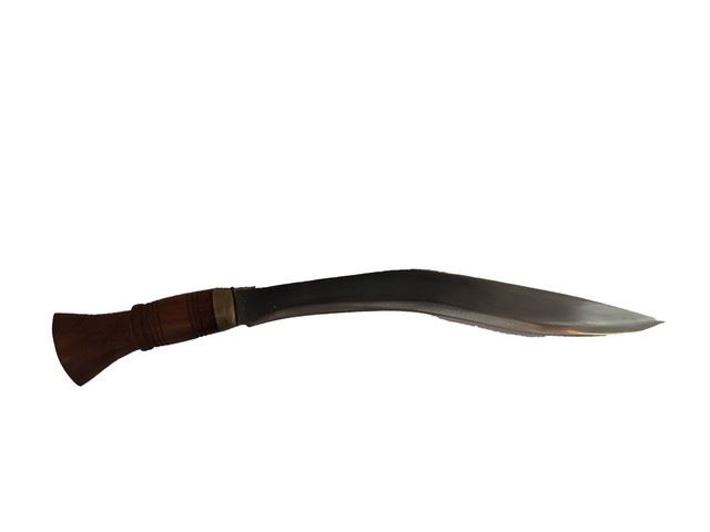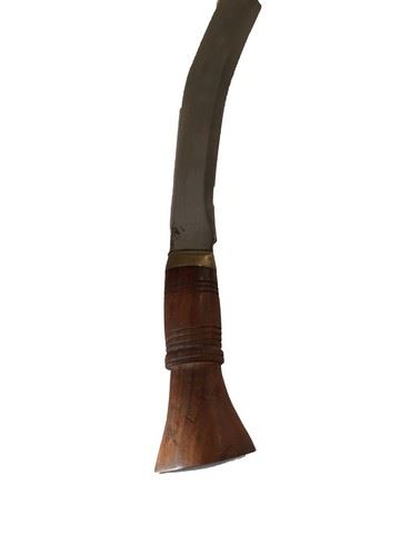 Production offices Kukri knife and sheath. This sword was used by the producer to create the final version of the kukri knives Alice (Milla Jovovich) ultimately used in Resident Evil: Afterlife. Made of real wood and metal (19"x3"). Made in India.