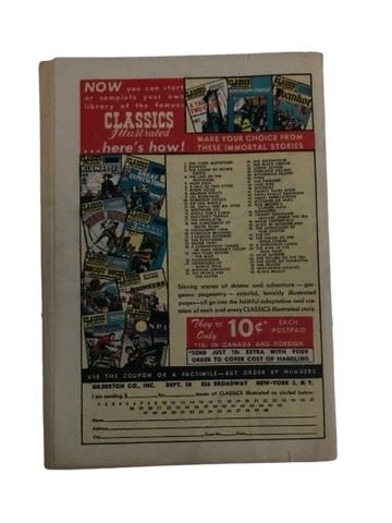 Step back into the golden age of illustrated storytelling with this rare set of Classic Comics from the 1940s. These early editions—predecessors to the Classics Illustrated series—bring iconic tales of mystery, folklore, and suspense to life with dramatic artwork and timeless narratives.
