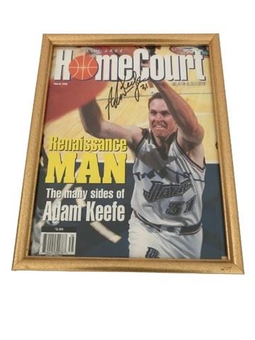 Framed HomeCourt magazine cover from March 1998, featuring and signed by Utah Jazz player #31 Adam Keefe.