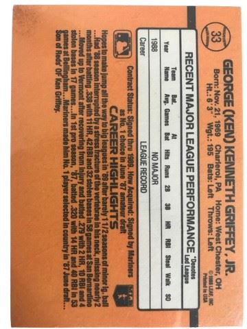 Lot 495 1988 Ken Griffey Jr. Rookie Card