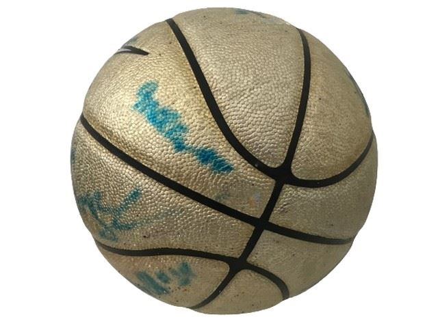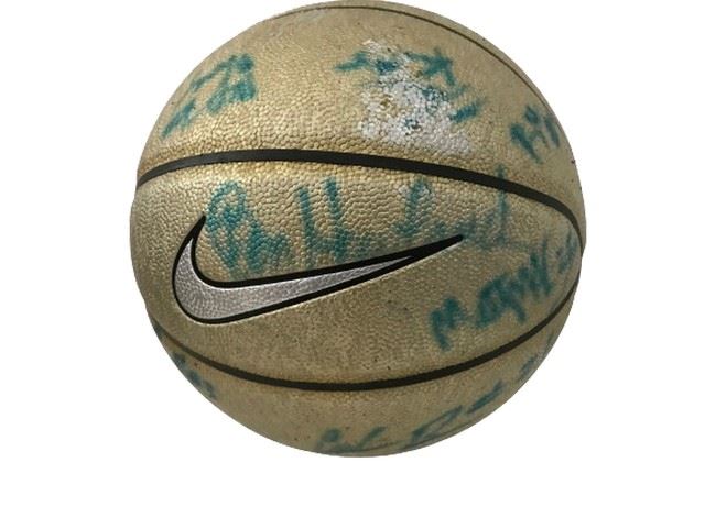 Condition: poor; sticky film autograph ink and basketball color faded