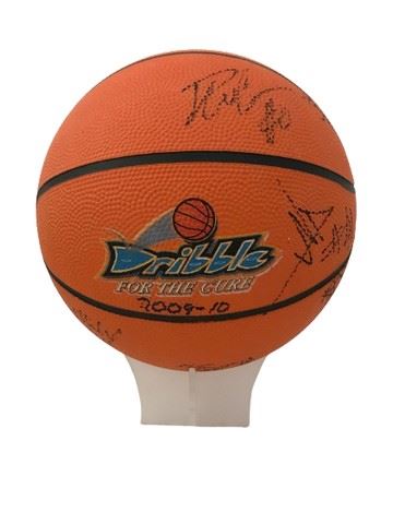Dribble for the Cure basketball signed by UCLA men's 2009 to 2010 basketball team. Includes # 23 Tyler Honeycutt, #13 James Keene, #1 Mike Moser, #21 Brendan Lane, #12 Anthony Stover, #44 Tyler Trapani and several more. The 2009–10 UCLA Bruins men's basketball team represented University of California, Los Angeles during the 2009–10 NCAA Division I men's basketball season. The Bruins were led by head coach Ben Howland and played their home games at Pauley Pavilion. They finished the season 14–18, 8–10 in Pac-10 play and lost in the semifinals of the 2010 Pacific-10 Conference.