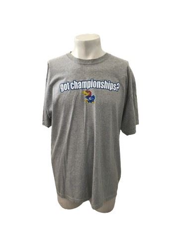 Extra large Gildan ultra cotton heather gray Got championships? Kansas Jayhawks 2012 men’s basketball national championships t shirt. Condition: Near mint; no tags, but unwashed and unworn.