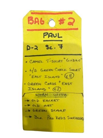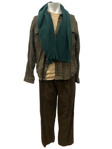 Loser (2000) - Paul Tannek (Jason Biggs) screen worn brown corduroy pants from East Island, beige, short sleeve, Gilden T-shirt, and green plaid flannel button-down shirt by Fibres brand. A green scarf completed the ensemble. Includes a costume department wardrobe tag.