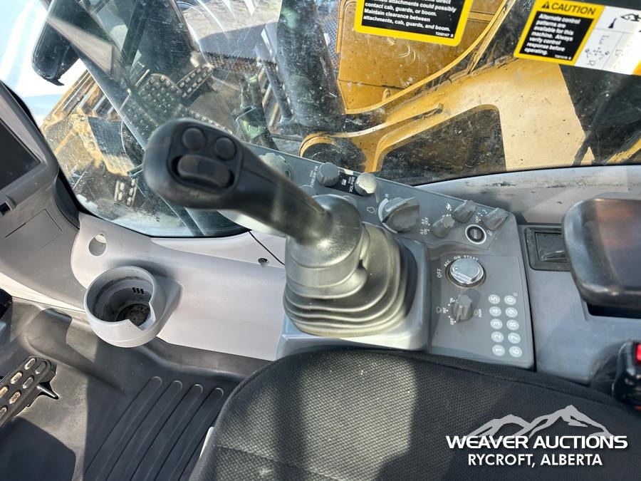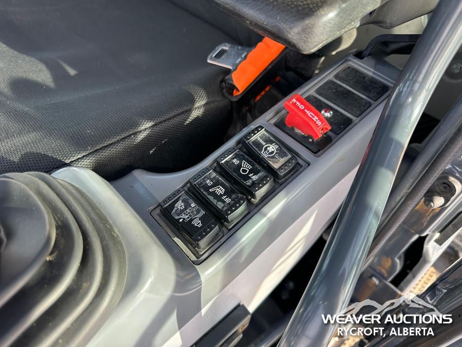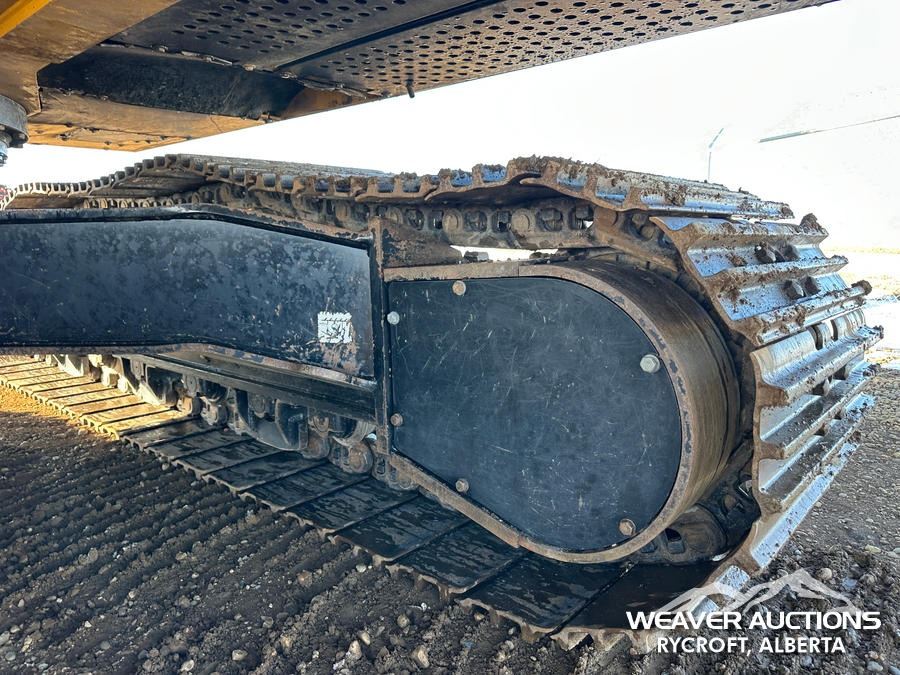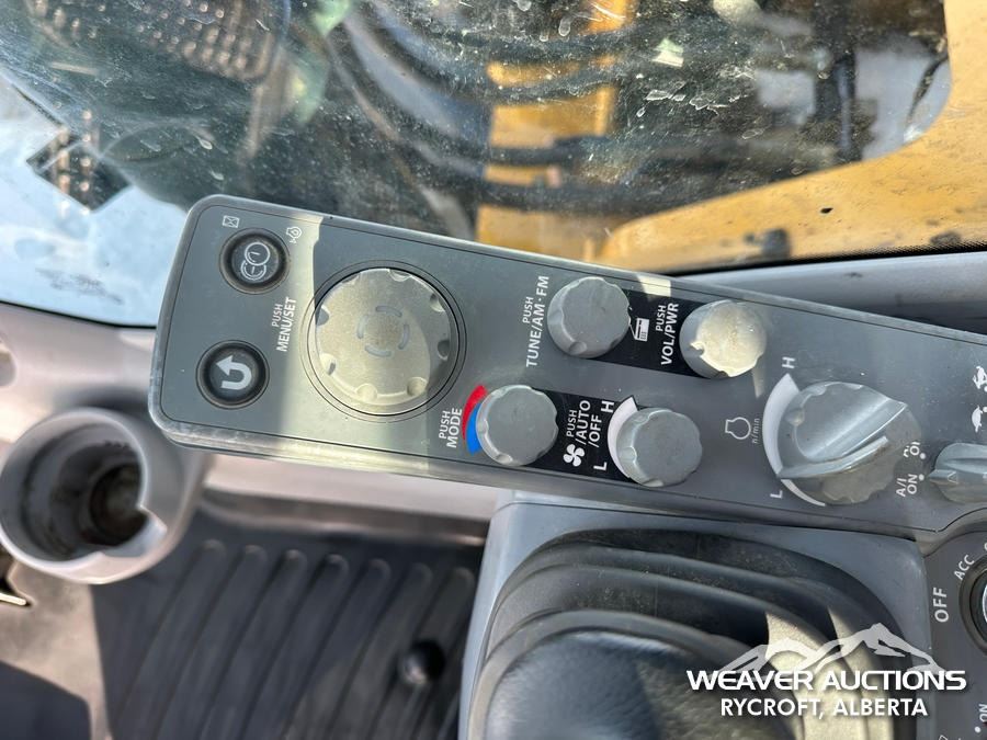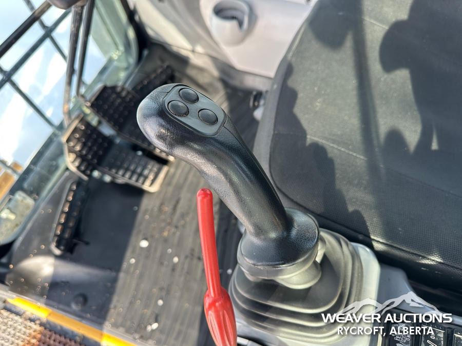 Specifications: AIR CONDITIONER, CONTROL PATTERN CHANGER, REAR VIEW CAMERA, POSITIVE AIR SHUTOFF, 32 IN TRIPLE GROUSER TRACK SHOES, MANUAL QUICK COUPLER, DIGGING BUCKET, HYDRAULIC THUMB