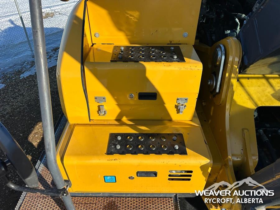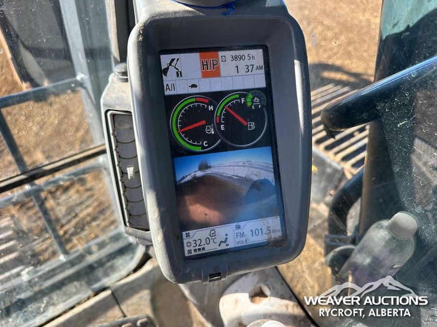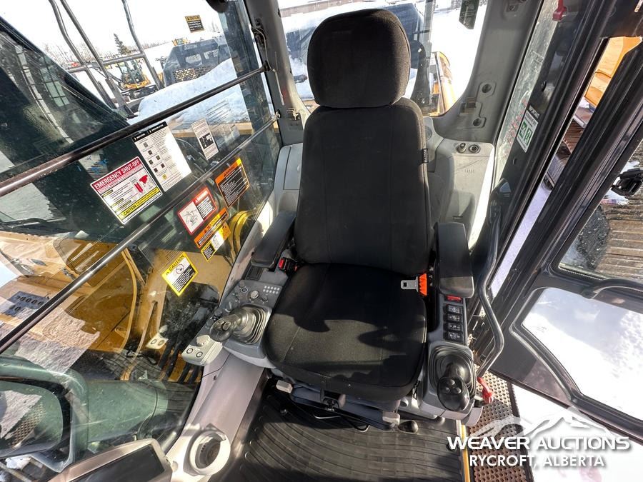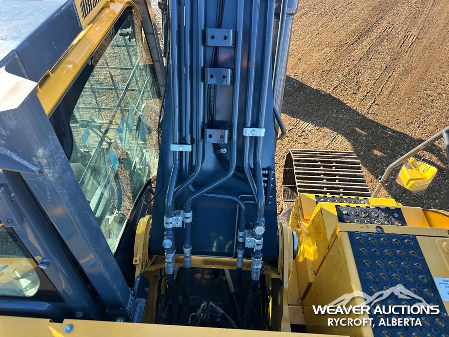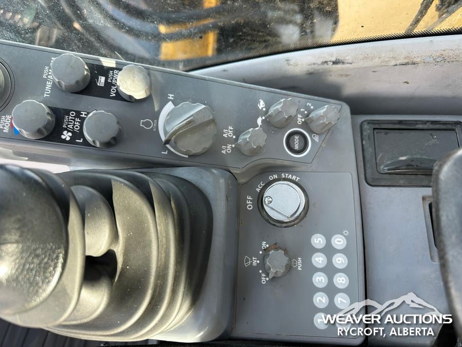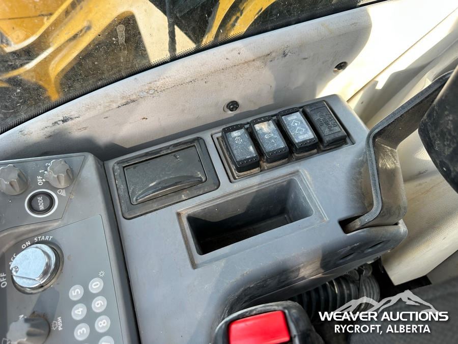 Specifications: AIR CONDITIONER, CONTROL PATTERN CHANGER, REAR VIEW CAMERA, POSITIVE AIR SHUTOFF, 32 IN TRIPLE GROUSER TRACK SHOES, MANUAL QUICK COUPLER, DIGGING BUCKET, HYDRAULIC THUMB