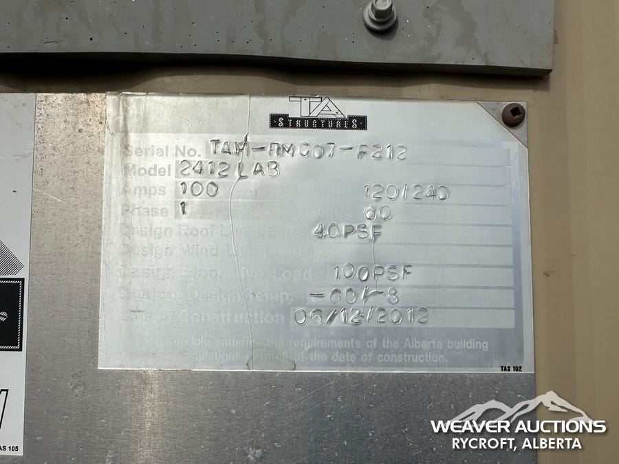 Lot 143 2012 T/A STRUCTURES 12X24 FT. LAB WELLSITE OFFICE
