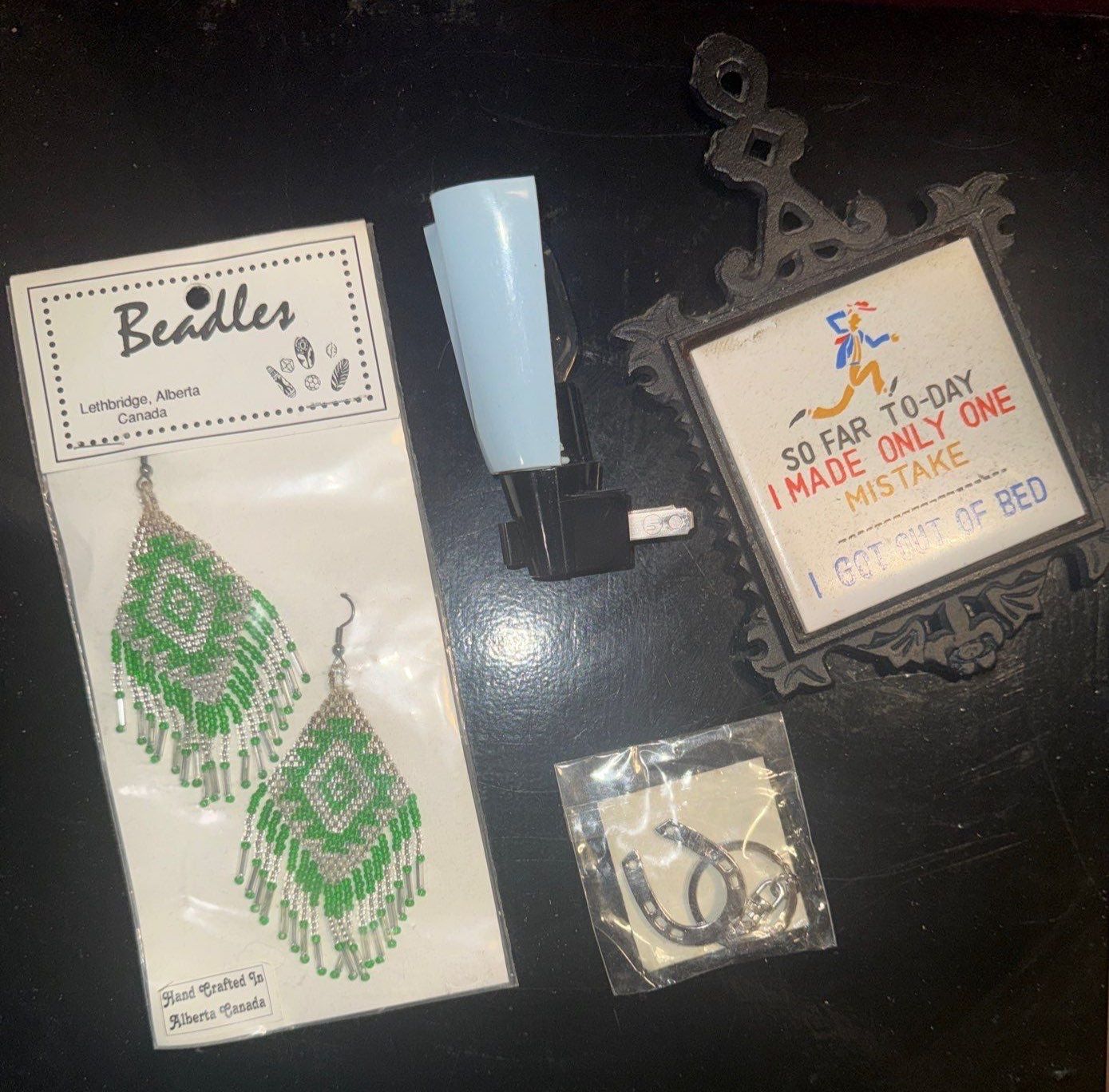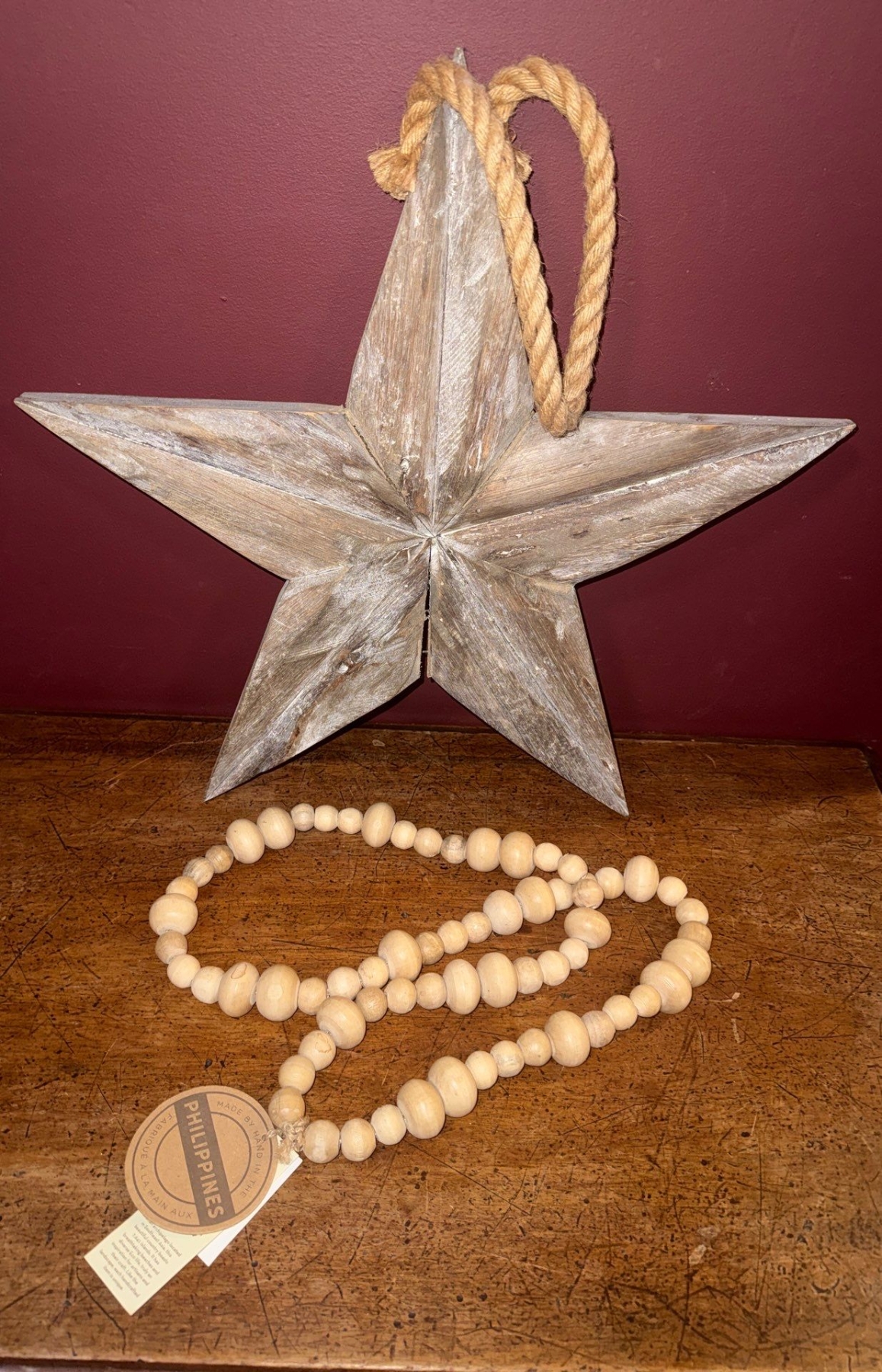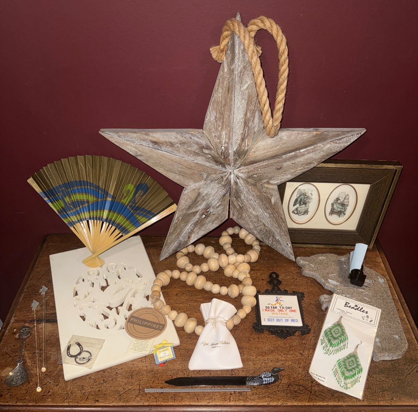 Lot 53 Home Accents & Charms - Large Wood Star 14"Tall Asian Fan Stone Art Ptayer Beads & More
