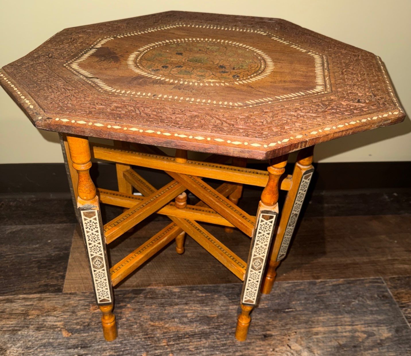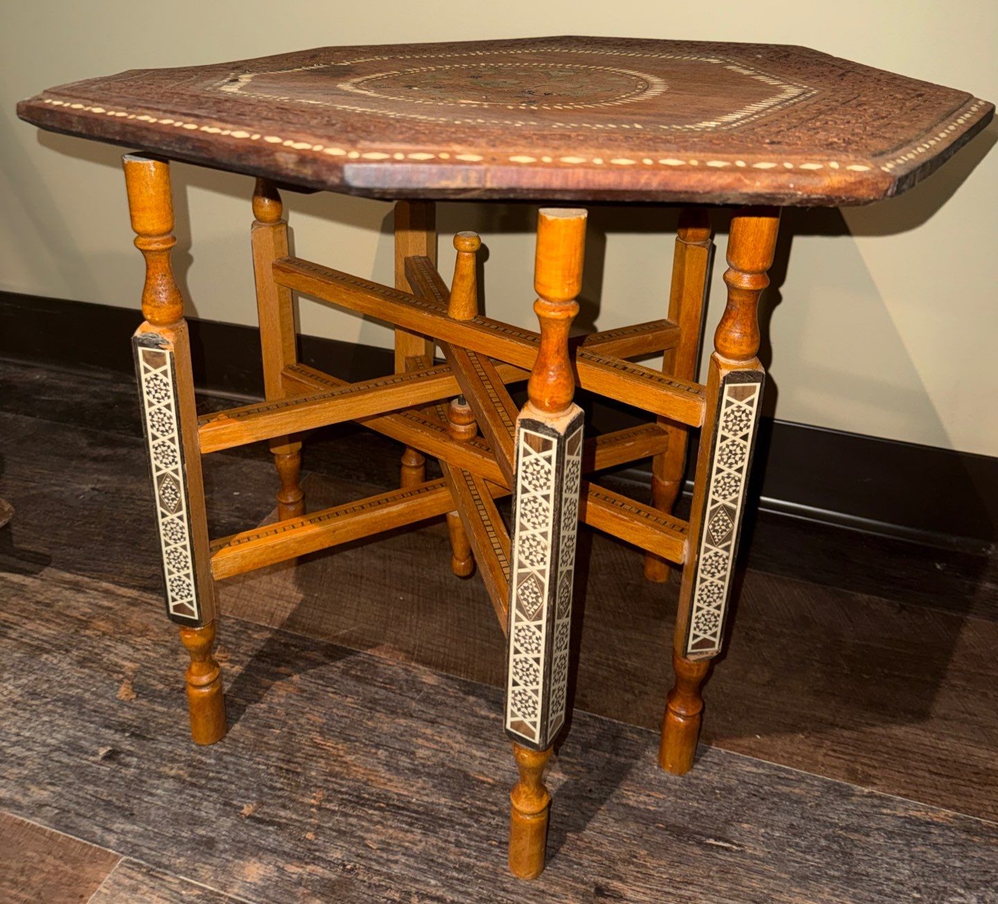 Lot 3 Moroccan Moorish Inlaid Hexagonal End Table 25"Tall