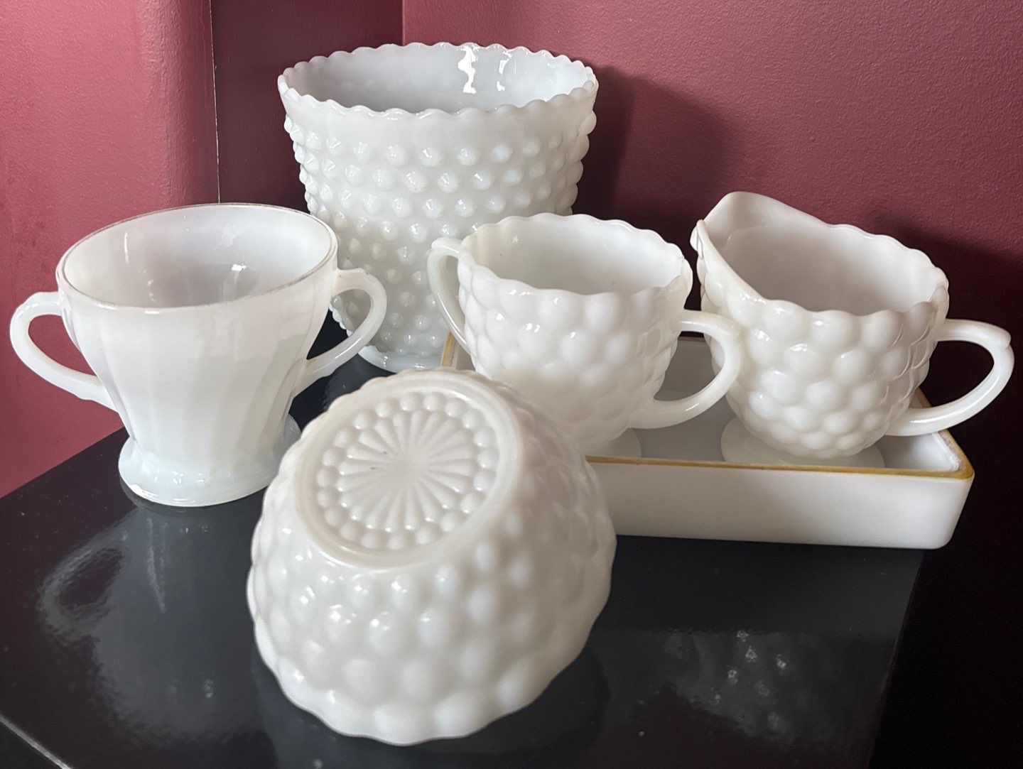 Lot 62 Vintage Anchor Hocking Milk Glass Collectibles - Hobnail Pattern