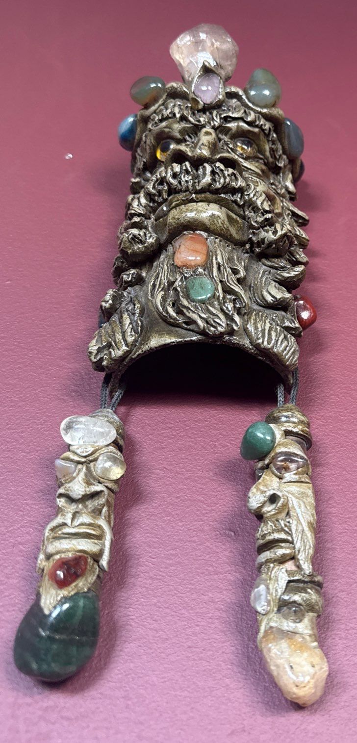 Lot 10 Pagan Mythological 'Green Man' w/ Chakra Crown 11"Tall - Celtic Nature Idol