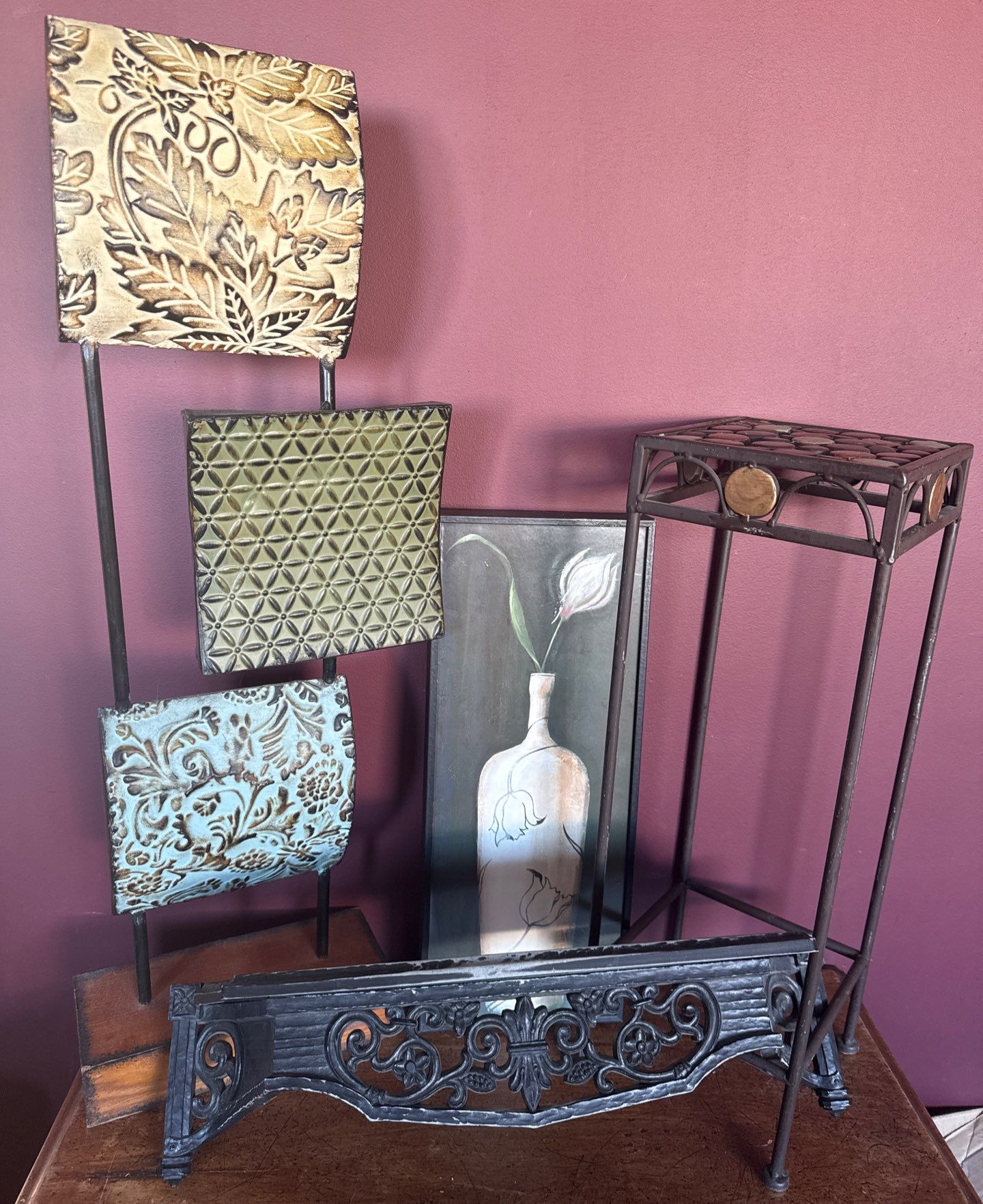 Lot 78 Home Decor Bundle - Gothic Floating Shelf Iron Side Table 3 Panel Floor Ornament 26"Tall