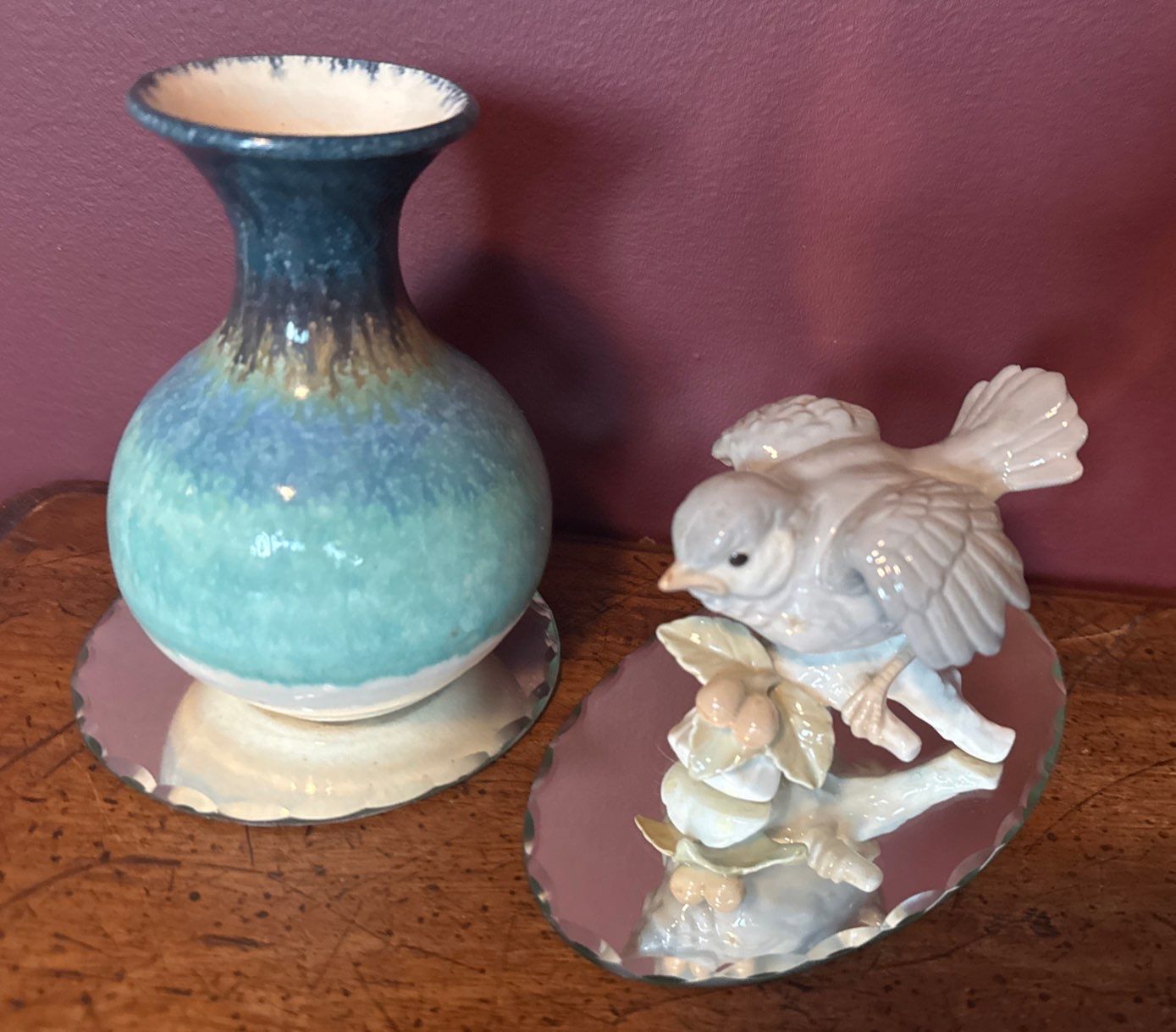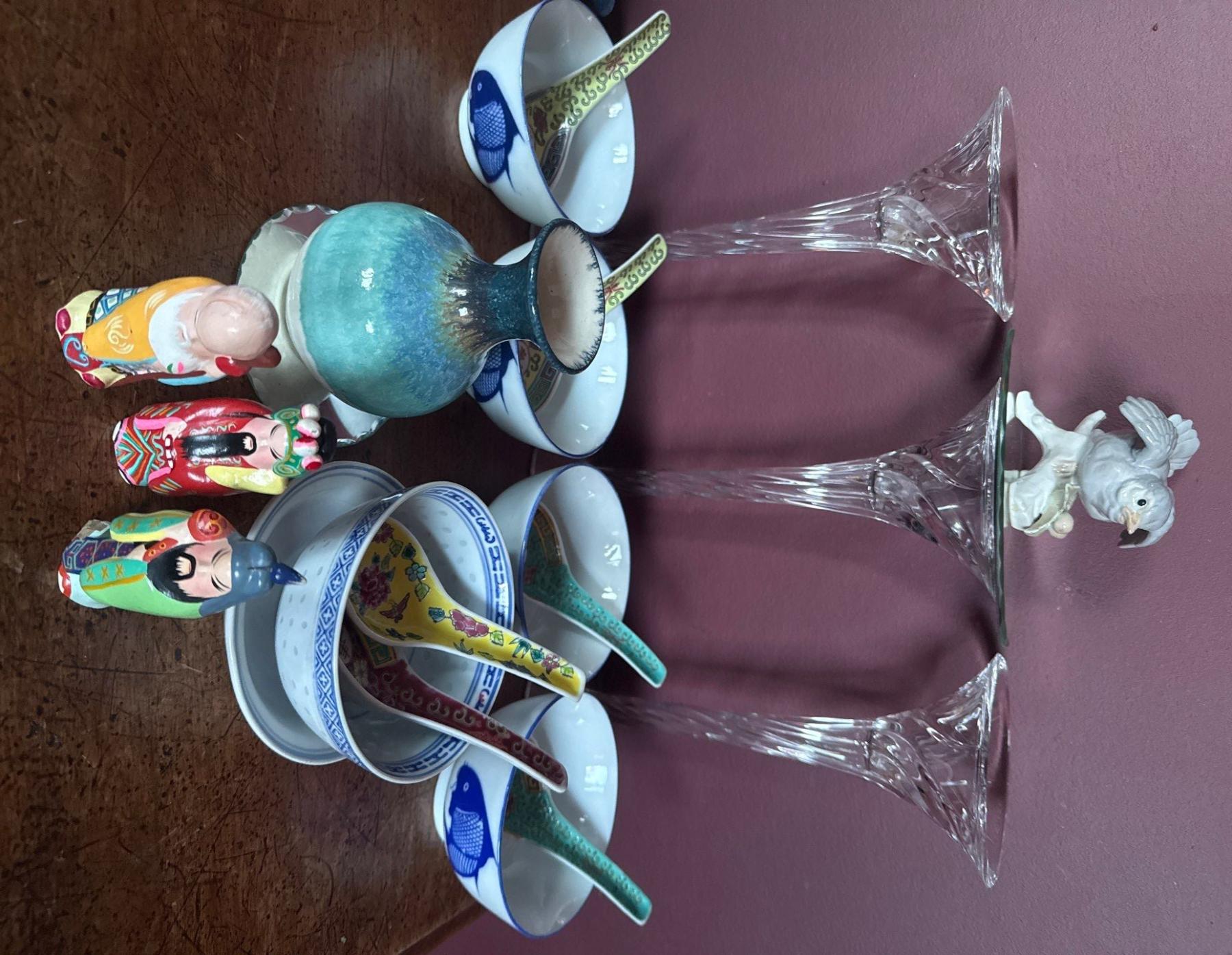 Lot 83 Navy & White Koi Fish Soup Bowls Styoneware Pottery Vase 3 Pedestal Candle Holders & more