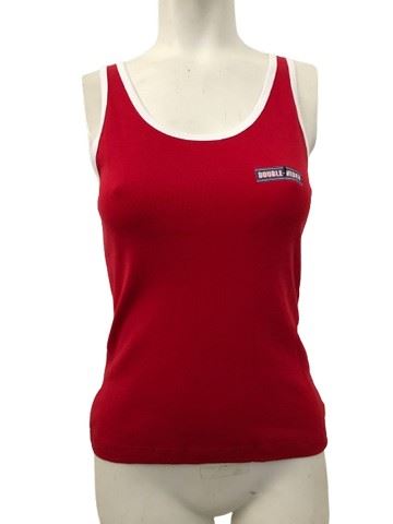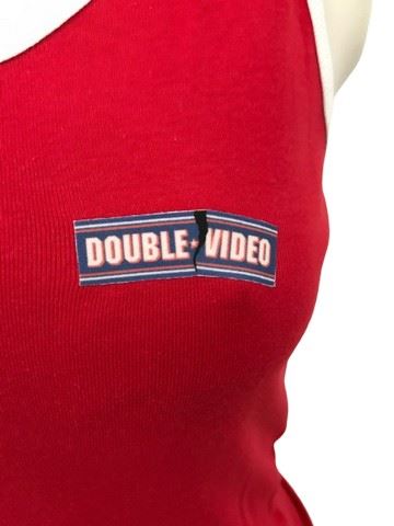 Fun With Dick & Jane - "Double Video" female store employee red tank with white trim (size L).