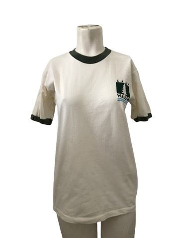 The Parent Trap (1998) - Camp Walden camper's ringer white ringer t -shirt with green trim (youth xl). Worn for PE by the campers.