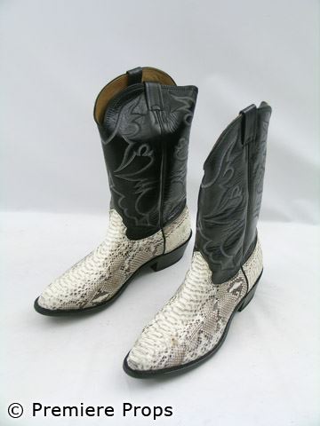 Floyd's creamy yellow cotton "Larry Mahan" l/s snap front western style shirt (size XL), maroon w/ blue and silver star and Texas shaped stripes "RM Style" neck tie, white python w/ black leather upper "Justin" cowboy boots (size 13), brown embossed leather w/ large oval silver designed buckle "Silver Creek" belt, grey felt "Stetson" cowboy hat (includes wardrobe tag / screen worn)