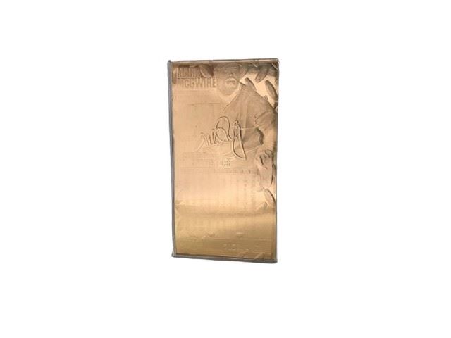 Limited edition 5858/626 1998 scoreboard 23 karat gold foil Mark McGwire trading card. Card features holographic Mark McGwire facsimile signature, red foil name and jersey number and reverse featuring statistics through July 9, 1998.
