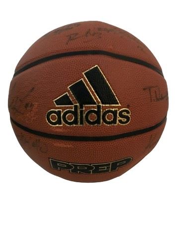 Adidas orange leather basketball signed by Ben Howland, and players #11, #5, #21, #34, #14, #20, #0, #24, #2, #1. Also includes a blue UCLA Adidas baseball cap with embroidered Adidas and UCLA logos signed by Ben Howland, Scott Duncan and others.