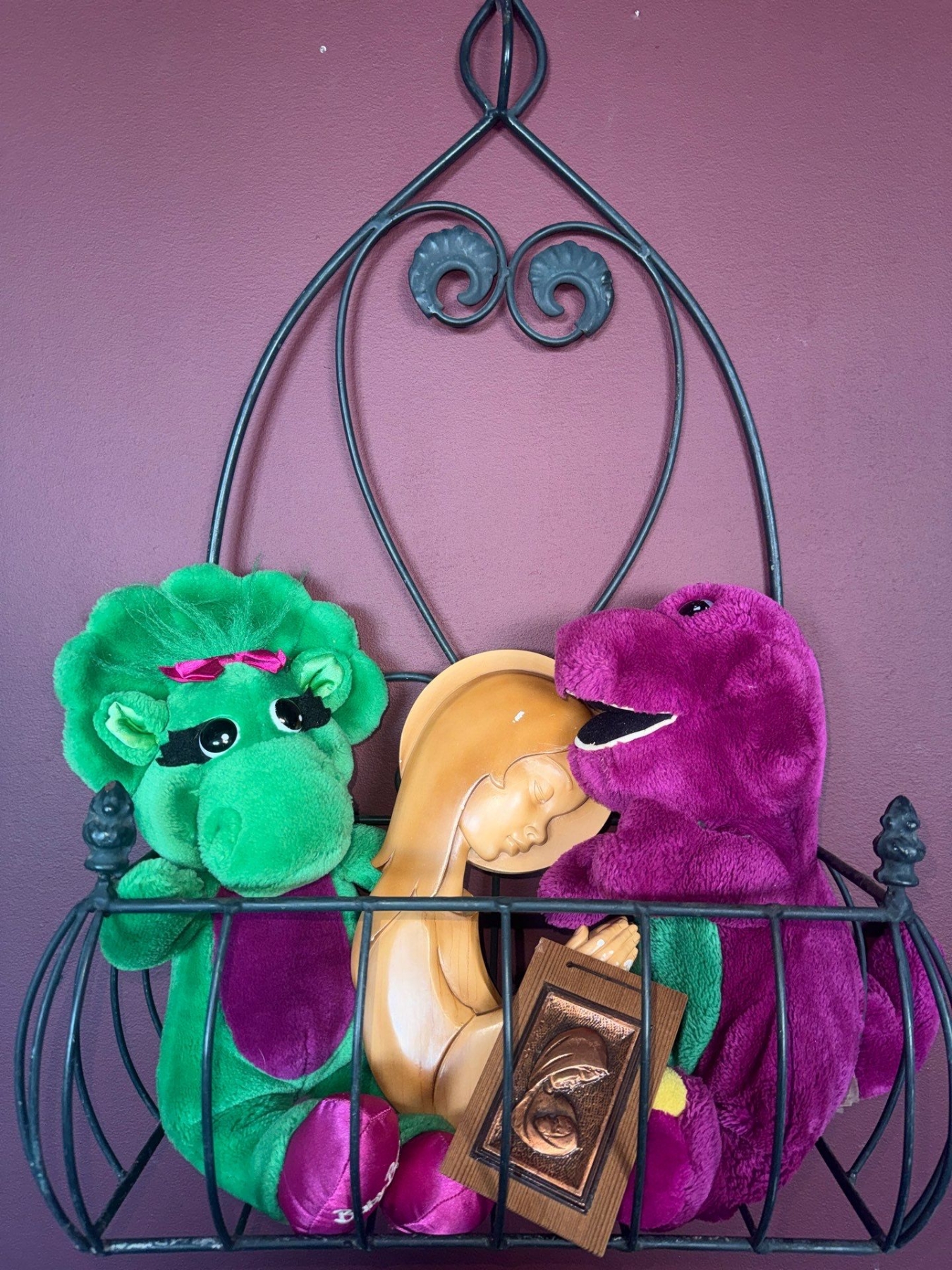 Lot 101 Barney The Talking Dinosaur w/ His Sidekick Baby Bop & Wall Mounting Planter