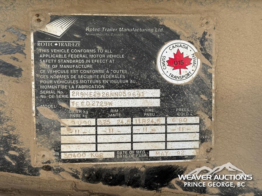 Lot 155 1992 ROTEC 27 FT. T/A END DUMP TRAILER