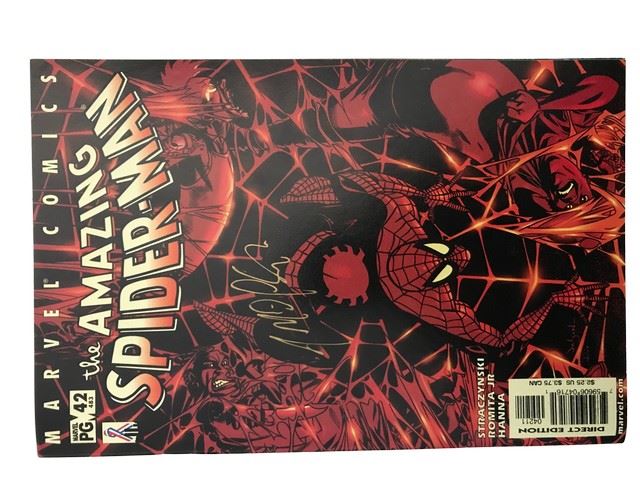 From from J. Michael Straczynski's personal files, this is a signed copy of the Amazing Spider-Man #42 (2002) with a copy of the storyboards used to produce the comic.